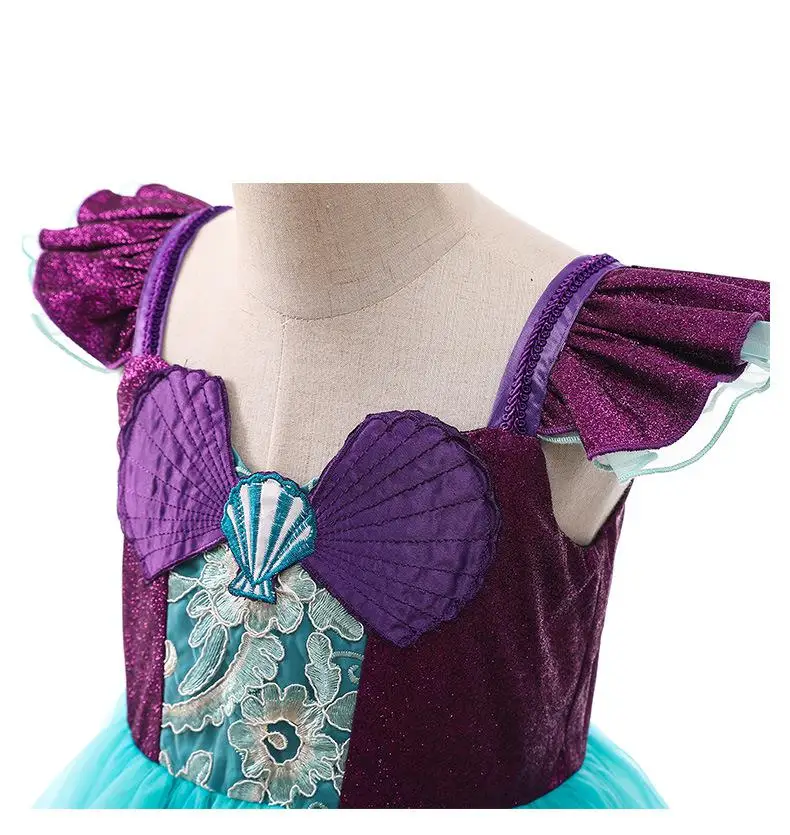 Платье принцессы Русалочки Ариэль для девочек, нарядный костюм на Хэллоуин, одежда для карнавала, дня рождения, Летнее нарядное платье