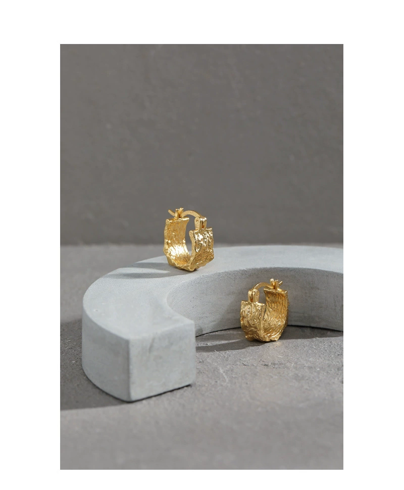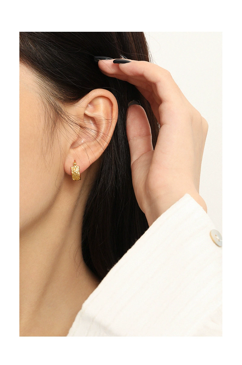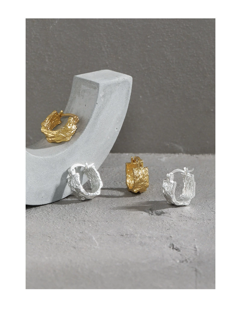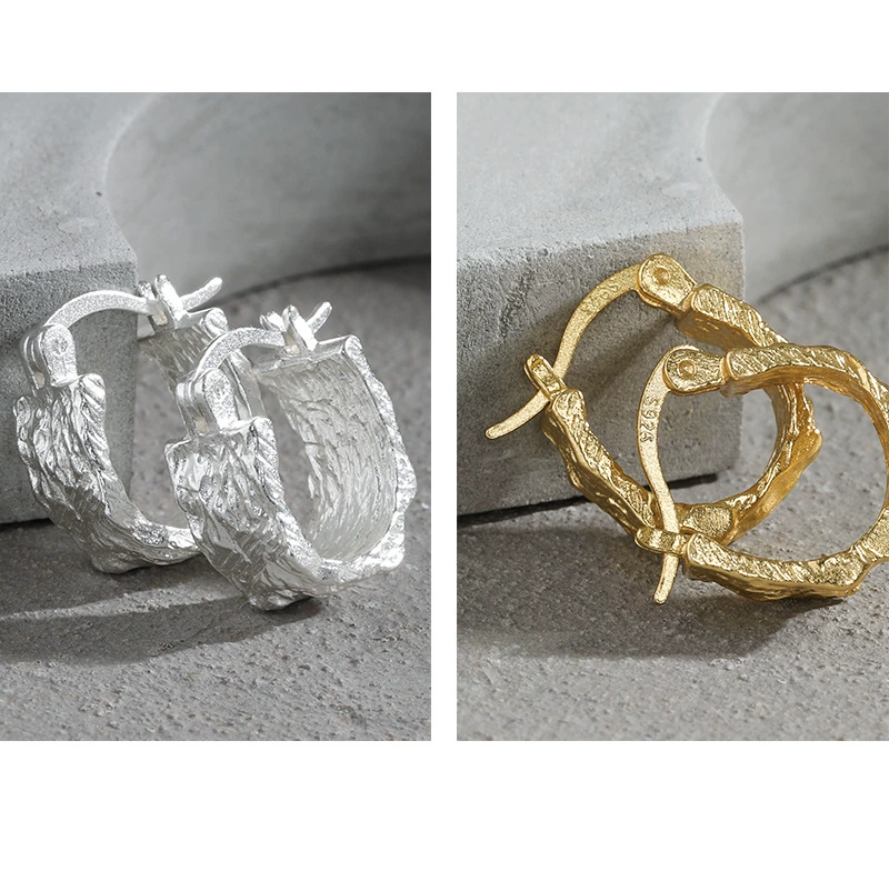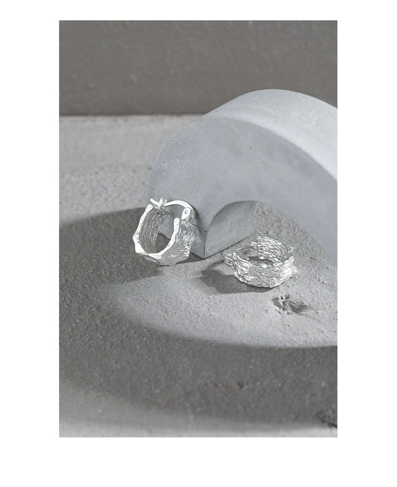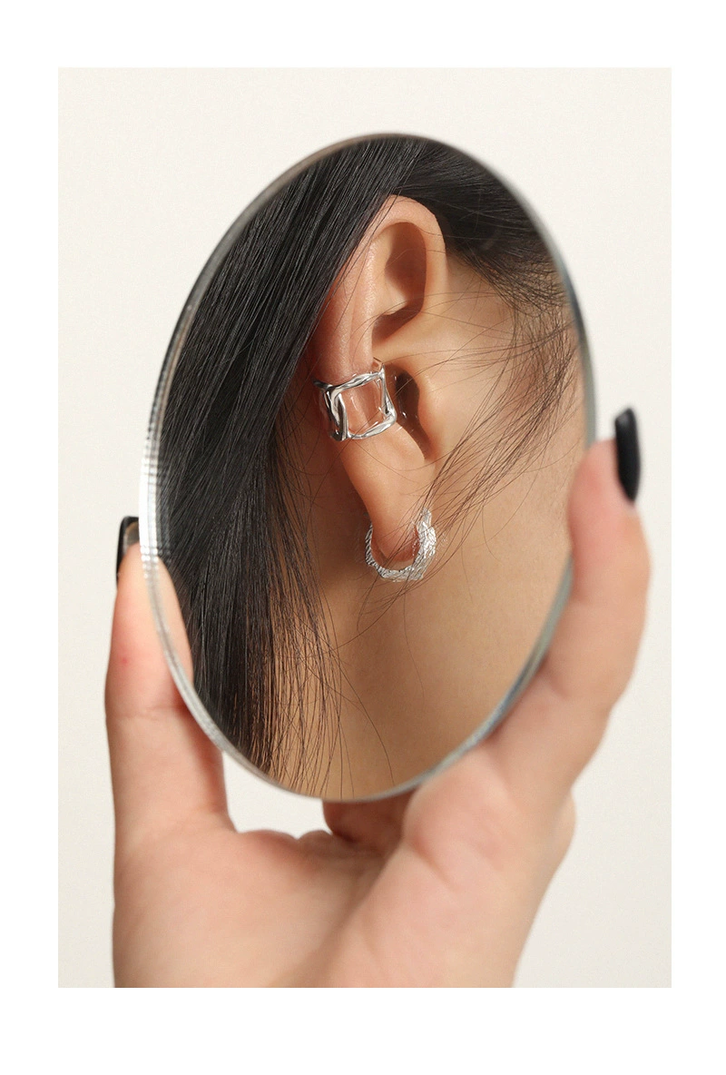 100% REAL.925 пробы серебристый неправильной формы текстура расплавленного Хооп Серьги huggie ухо пряжкой TLE2261
