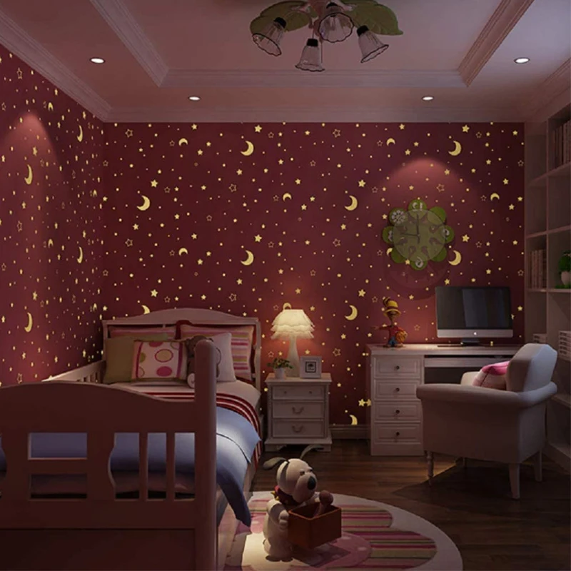 Зеленая Луна звезды светящиеся наклейки на стену для детской комнаты, художественное украшение для Люминесцентные наклейки на стену в виде животных светится в темноте Стикеры