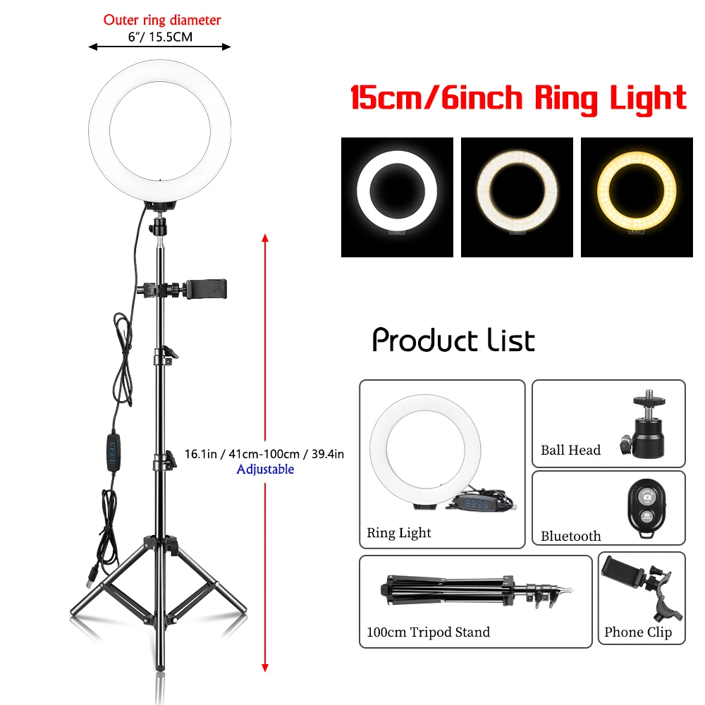 Features 20SH 6inch/16cm Ring Light Photo Ringlight Led With Tripod Stand