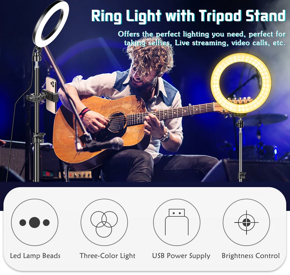 Features 10SH 6inch/16cm Ring Light for Streaming Video With Tripod Stand