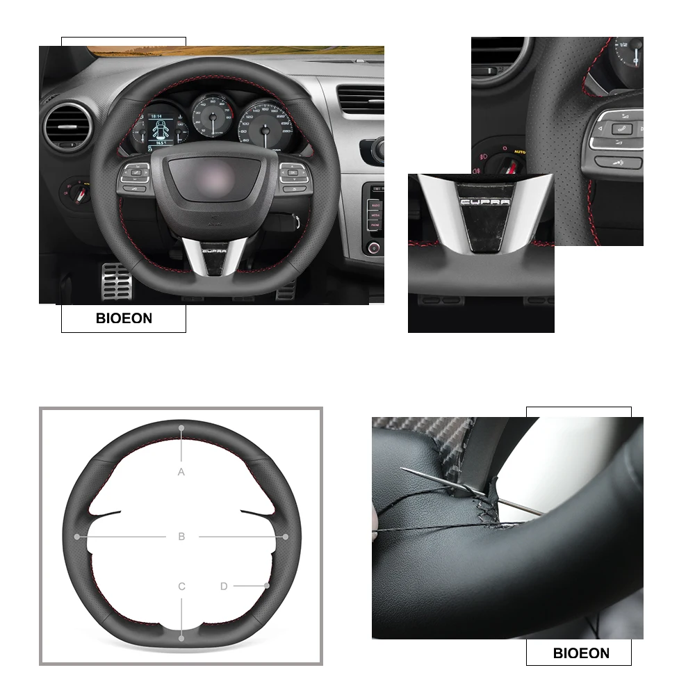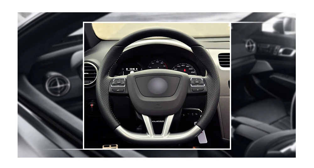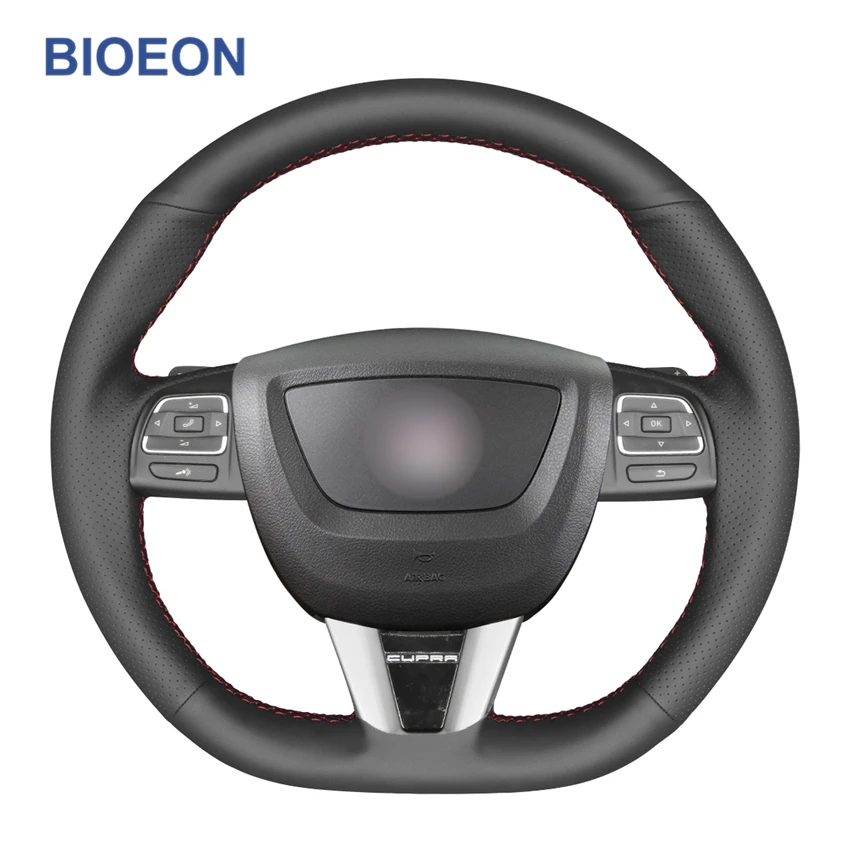 Оплетка для руля Seat Leon FR CUPRA MK2 1P 2009 2010 2011-2012, искусственная кожа, Черная