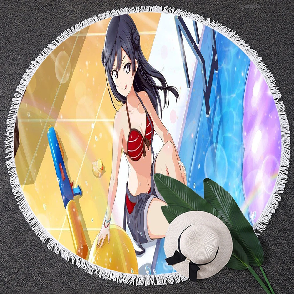 Пляжное полотенце из микрофибры, круглая ткань с 3D принтом для девушек, подростков, украшение для дома, лето