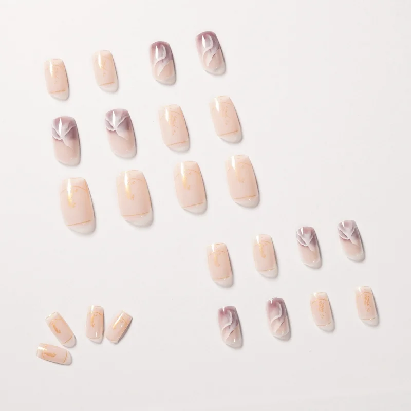 GAM-BELLE блестящие цветущие накладные ногти длинные квадратные телесные французские полное покрытие нажмите на ногти искусство ложные советы с клеем инструмент для маникюра