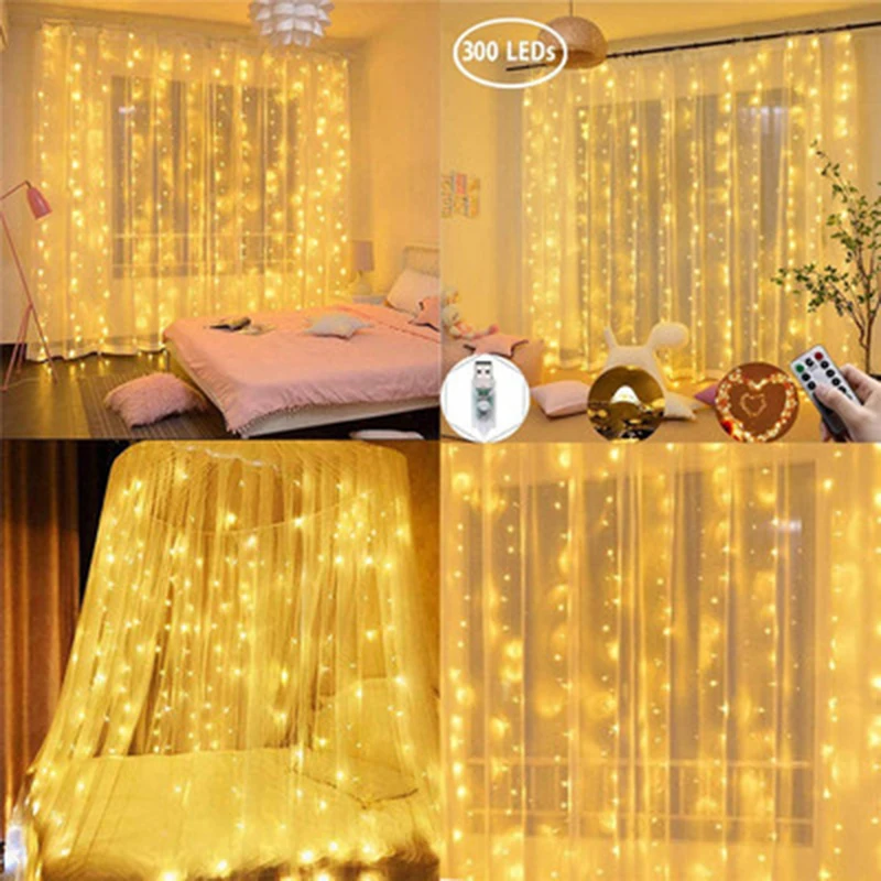СВЕТОДИОДНЫЕ гирлянды Новогоднее украшение дистанционного Управление USB Свадебная гирлянда штора 3 м лампа праздник для лампа для спальни для создания сказочной атмосферы на открытом воздухе