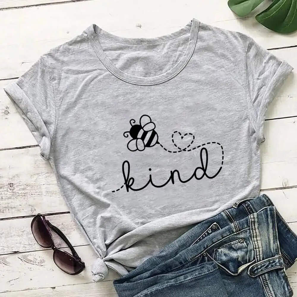 Женская футболка из 100% хлопка с принтом Be Kind Bee, летний Повседневный Топ с коротким рукавом