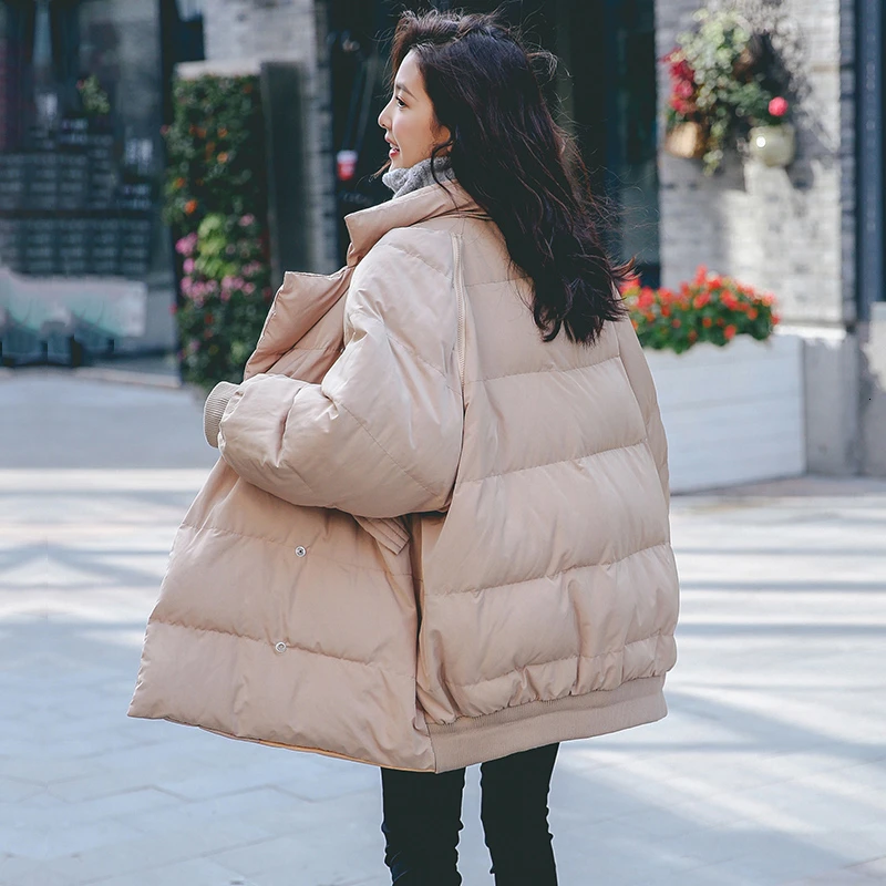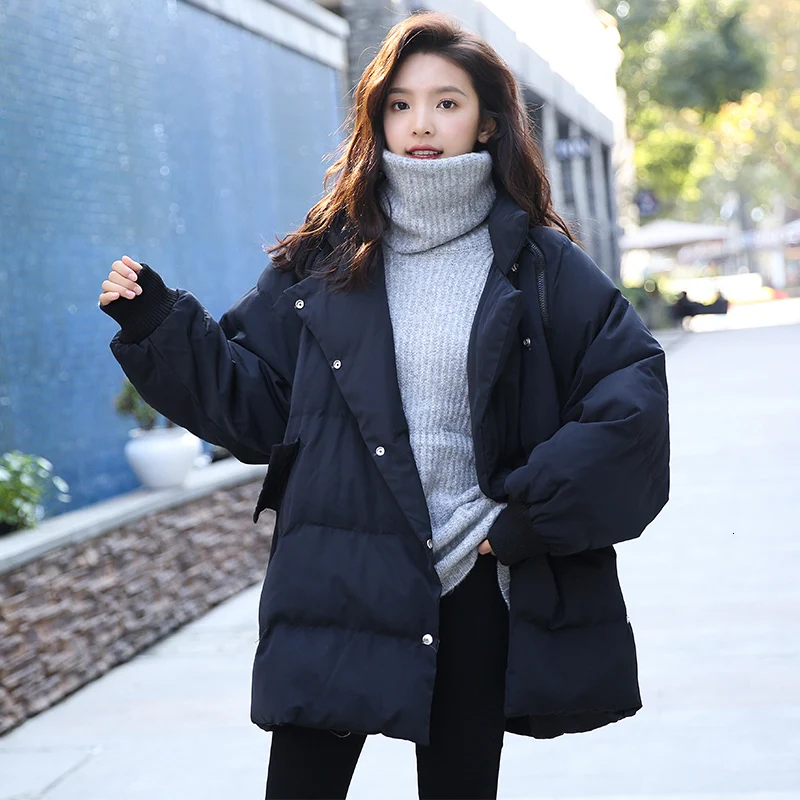 Куртка-бомбер женская хлопковая, базовая свободная парка в Корейском стиле, базовая верхняя одежда в стиле Харадзюку, большие размеры, на зиму