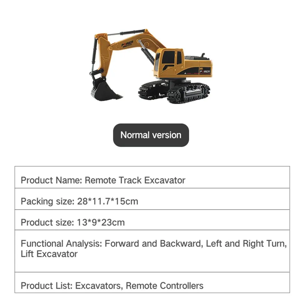 Батарея для передатчика: 2 х 1,5 В батарейки типа АА (не входят в комплект поставки)Время работы: около 30 минутВремя зарядки: 120 минутИнформация о посылка:Посылка: 28x11.7x1 5 см/11x4.6x5.9 дюймовВес посылка: 461 г/16,26 унцийПосылка с общей коробкойПосылка включает в себя:1 х экскаватор1 пульт дистанционного управленияПримечания:1. Из-за разницы между различными мониторами изображение может не отражать фактический цвет изделия. Мы гарантируем, что модель реального изделия не отличается от представленной на фото.2. Из-за ручного измерения и различных методов измерения, пожалуйста, допускайте отклонение на 1-3 см. Спасибо!