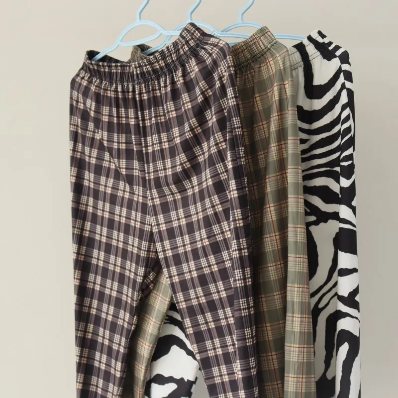 Брюки женские в клетку с широкими штанинами, винтажные повседневные Тонкие штаны в стиле Харадзюку, уличная одежда, лето 2021