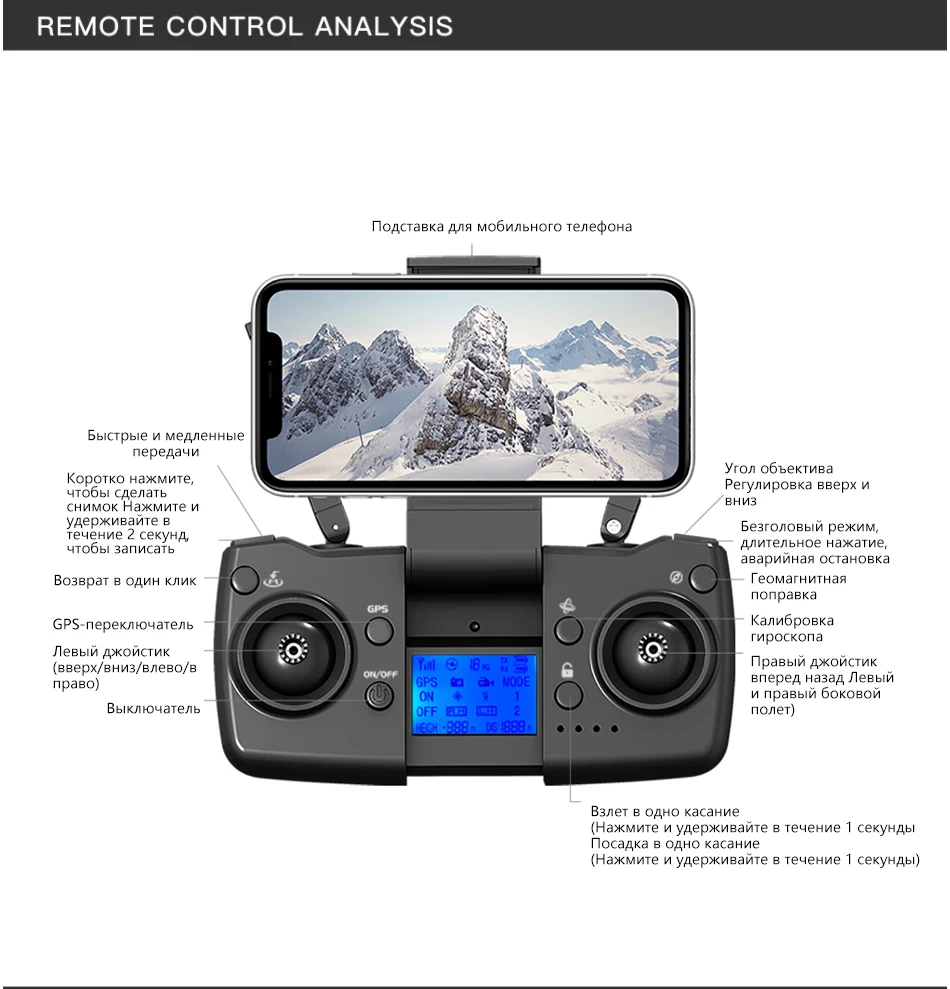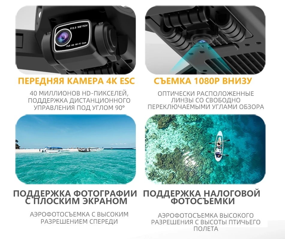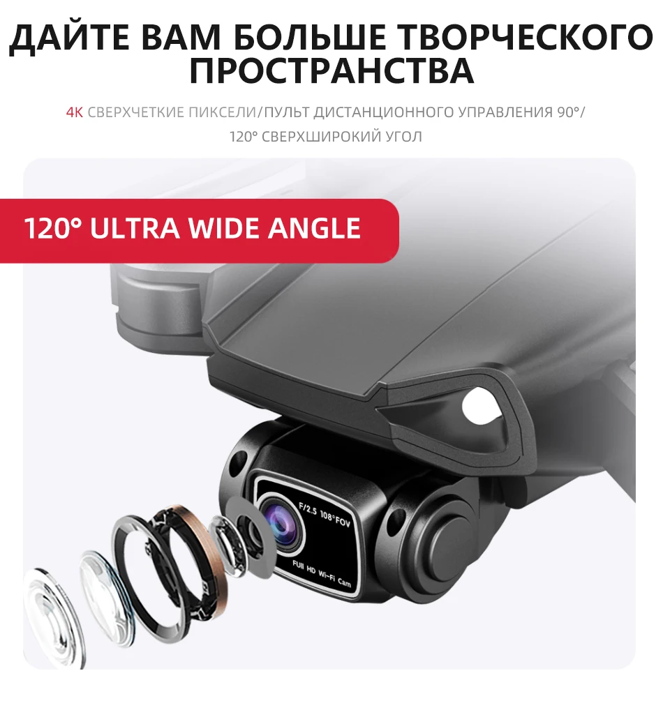 - Широкоугольная камера ESC 4k HD. можно отрегулировать угол 120 ° с помощью контроллера.