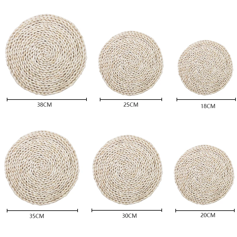 Натуральный коврик для стола, круглый плетеный коврик ручной работы...