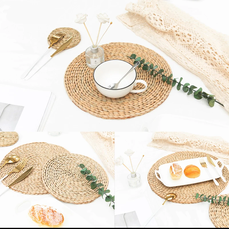 Коврик для стола из натурального гиацинта, ручной работы, плетеный круглый коврик, термостойкий, Горячая Изоляция, Противоскользящий коврик