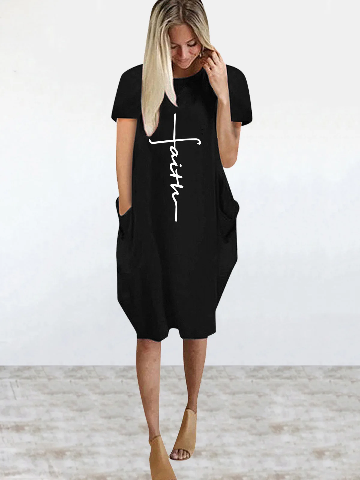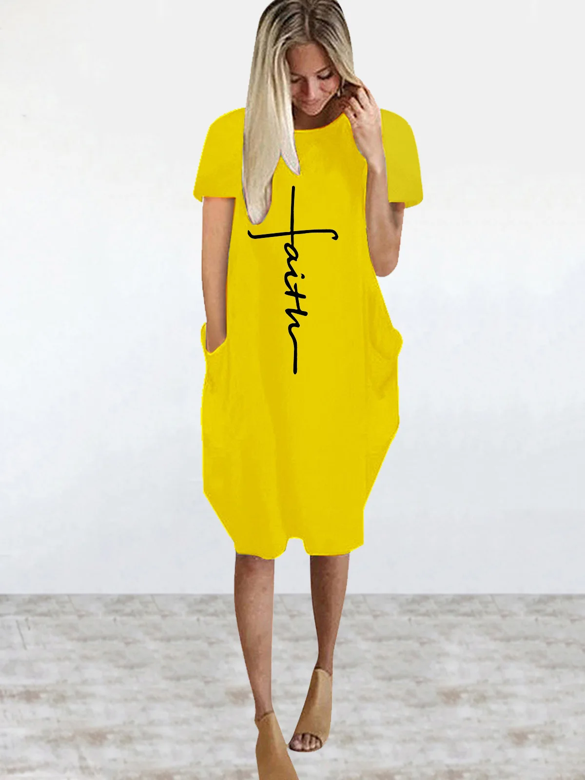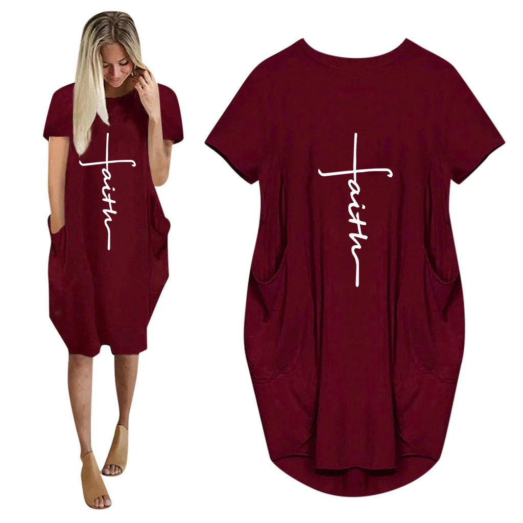 Женское платье с коротким рукавом, свободное, с карманами, летнее, ...