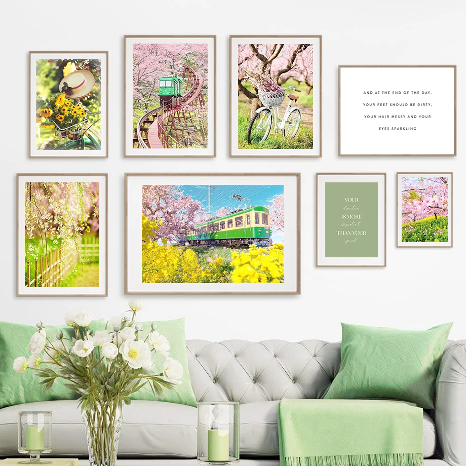 Настенная картина в скандинавском стиле с изображением цветущего персика подсолнуха велосипеда троса автомобиля, настенные картины для декора гостиной