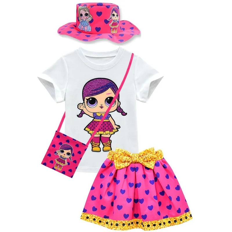 Оригинальная кукла-сюрприз, новая мультяшная модная летняя юбка, Женский костюм с коротким рукавом и круглым вырезом, костюм-футболка