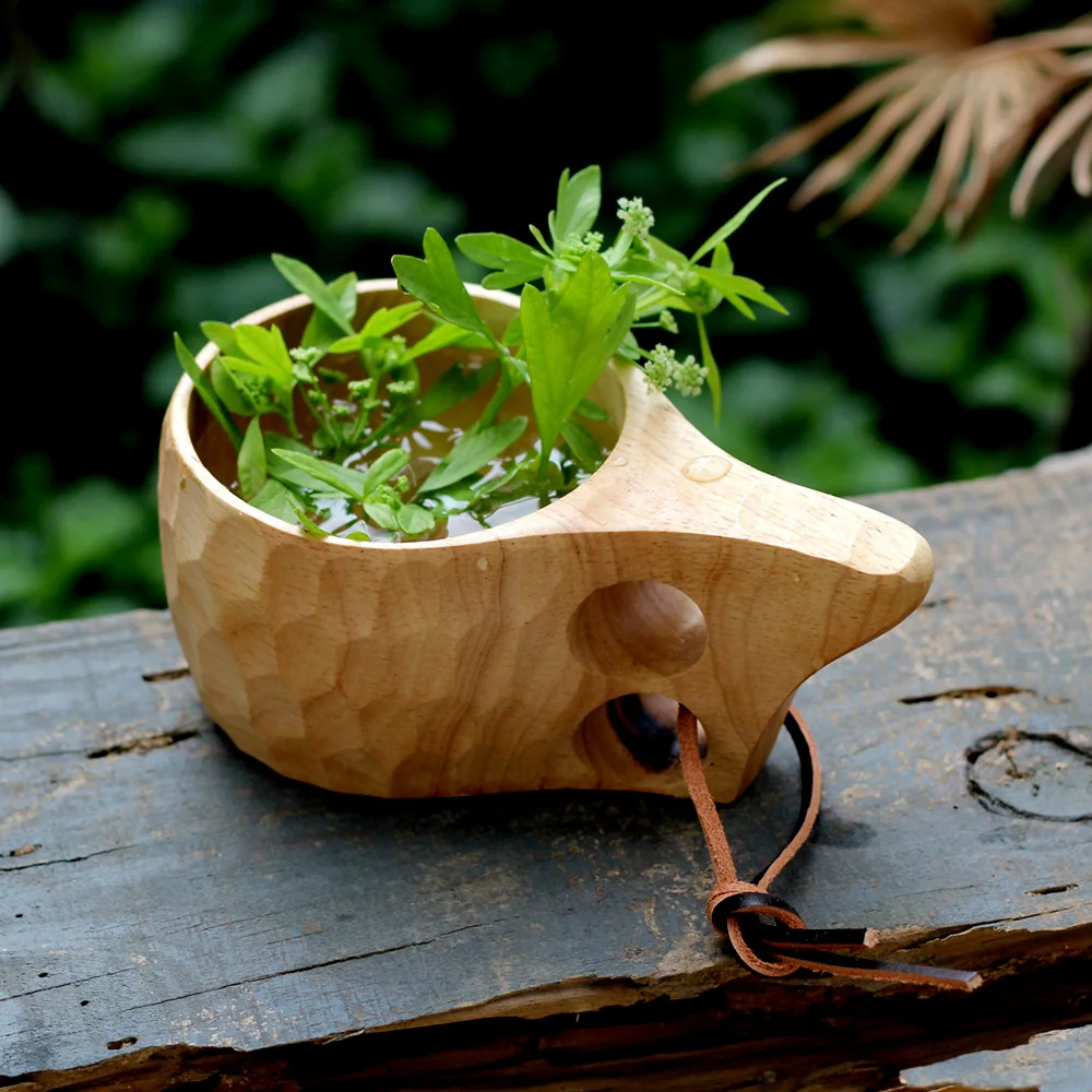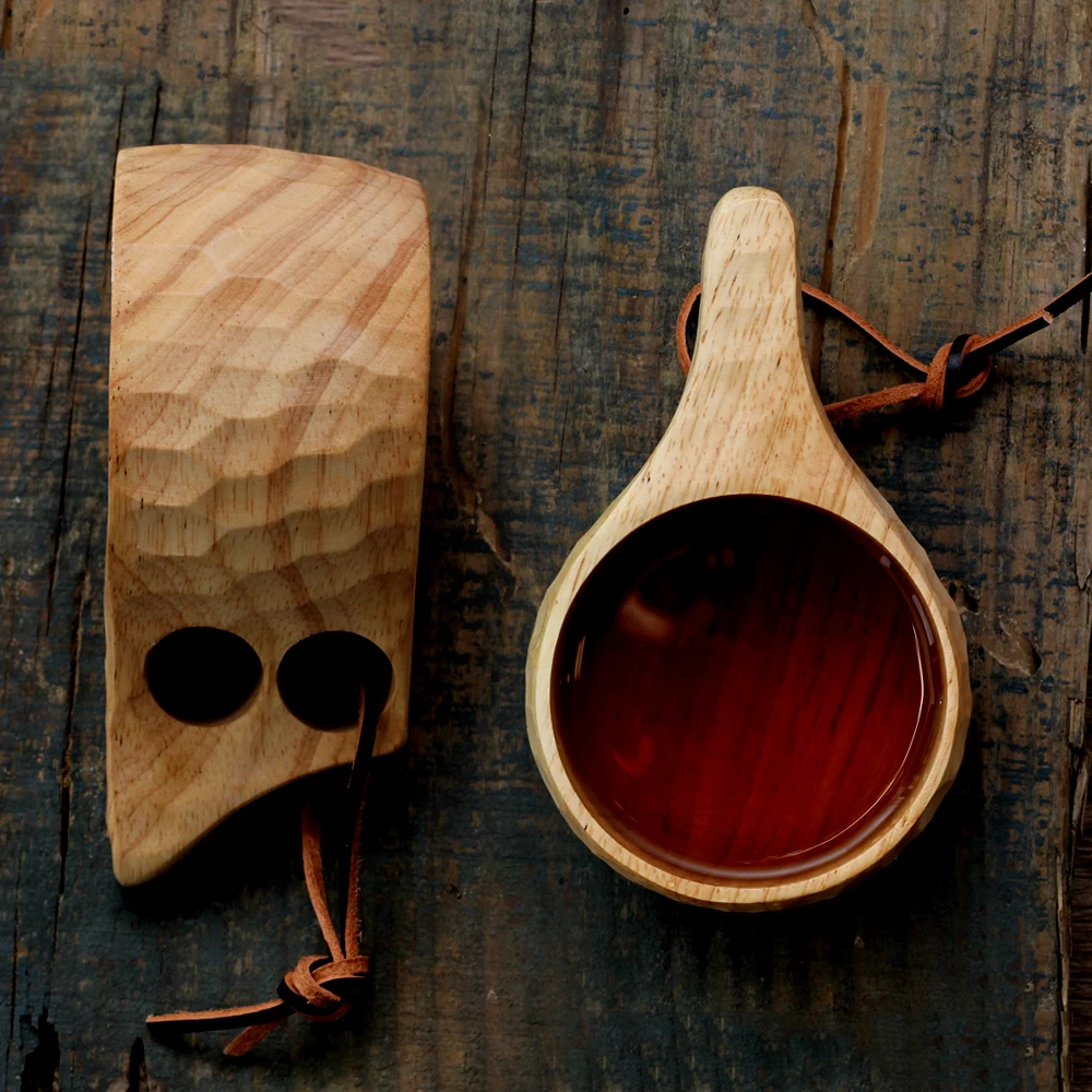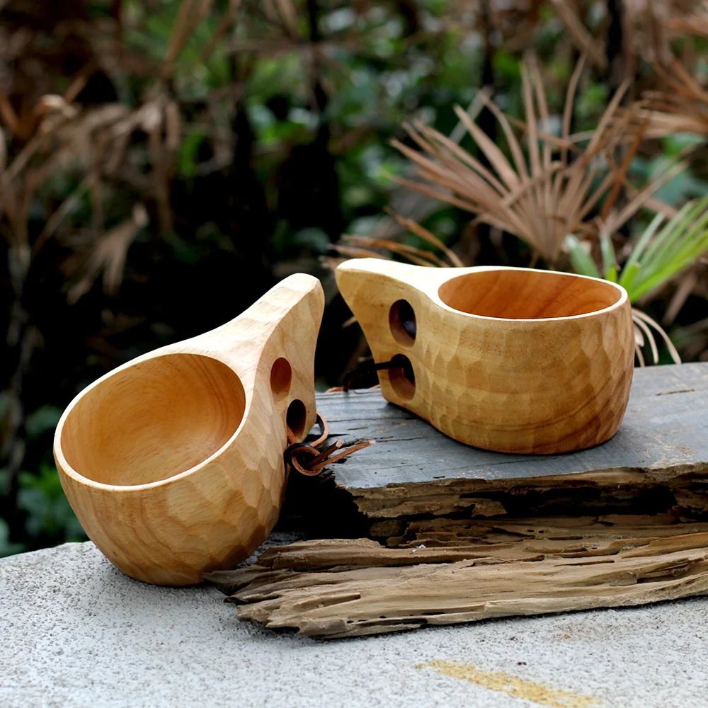 Деревянная кружка-рюкзак ручной работы в скандинавском стиле для кемпинга, походов, выживания, портативная деревянная кружка для кофе, чая, посуда для питья