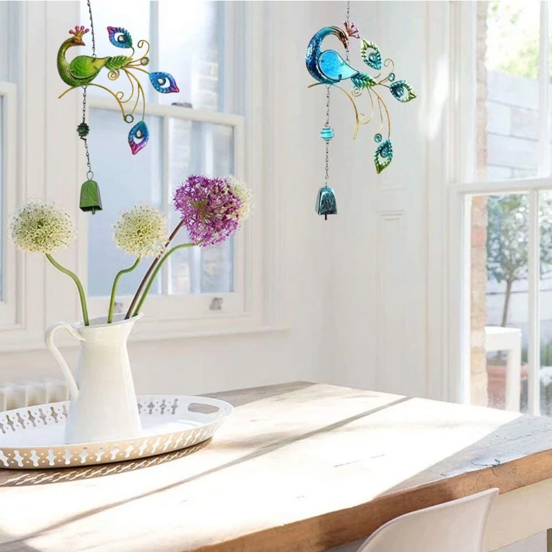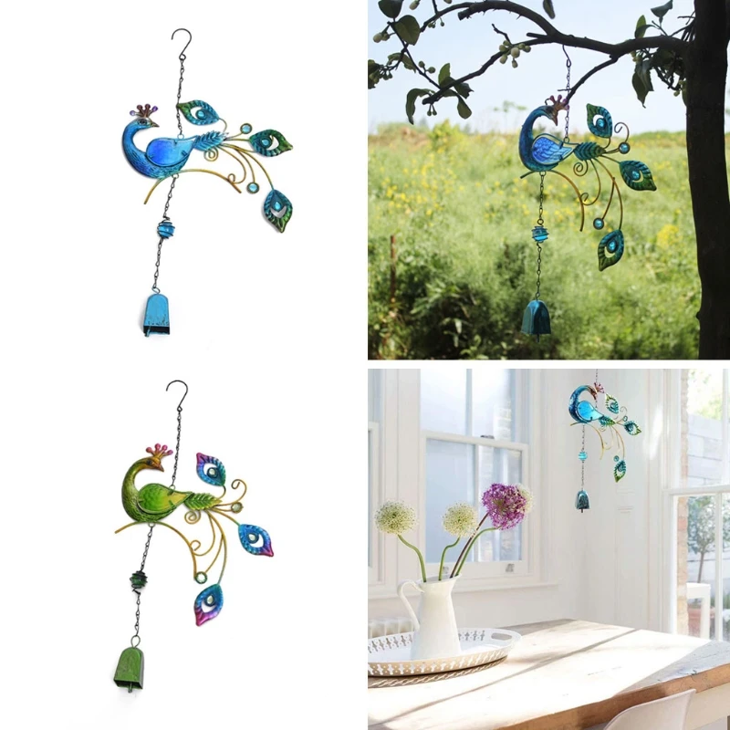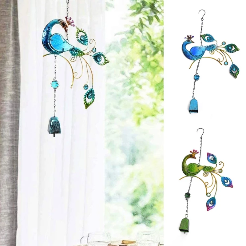 Креативные ветряные колокольчики в виде павлина, 19 дюймов, металлические художественные подвесные колокольчики, украшения для сада, патио, двери, стены, украшение для дома