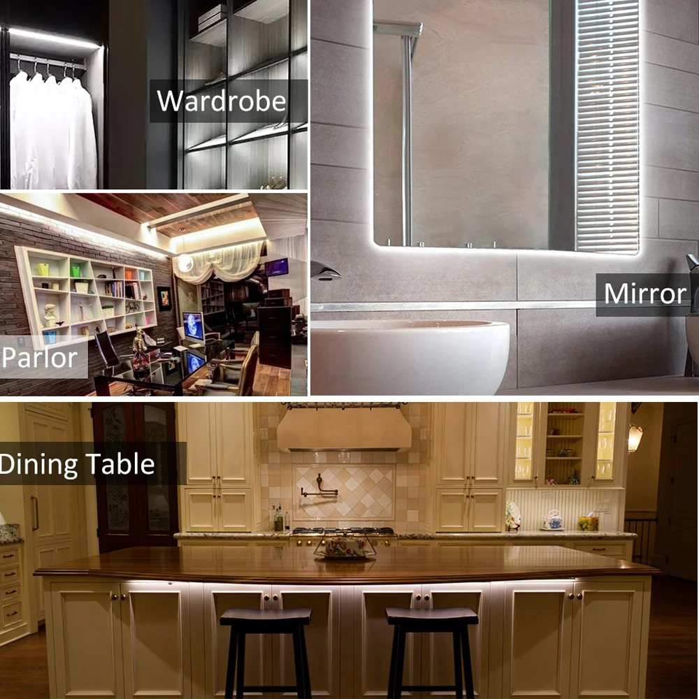 2. Двусторонняя клейкая лента для Светодиодный полоски, с своей превосходной клей и устойчивость к атмосферным воздействиям, может быть прикреплен к любому прозрачное стекло, металл и пластик поверхности, но некоторые поверхности, как, например, ткань и дерево, может повлиять на их функции и долговечность. Перед установкой проверьте адгезию на светильник.
