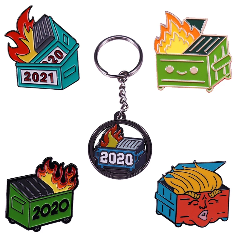 2020 2021 мусорный контейнер значок пожарного сжигание мусора брошь мусора пожаров брелок Забавные Саркастические мем Pin кольцо для ключей