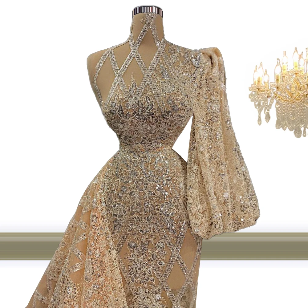 Aso Ebi Шампань Румяна платье русалки Выпускной 2022 блестящие бисе...