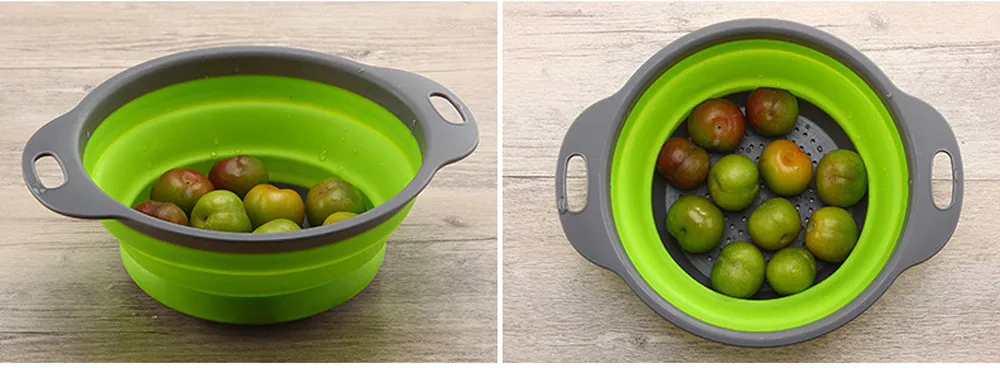Круглая Складная Силиконовая корзина для мытья фруктов и овощей