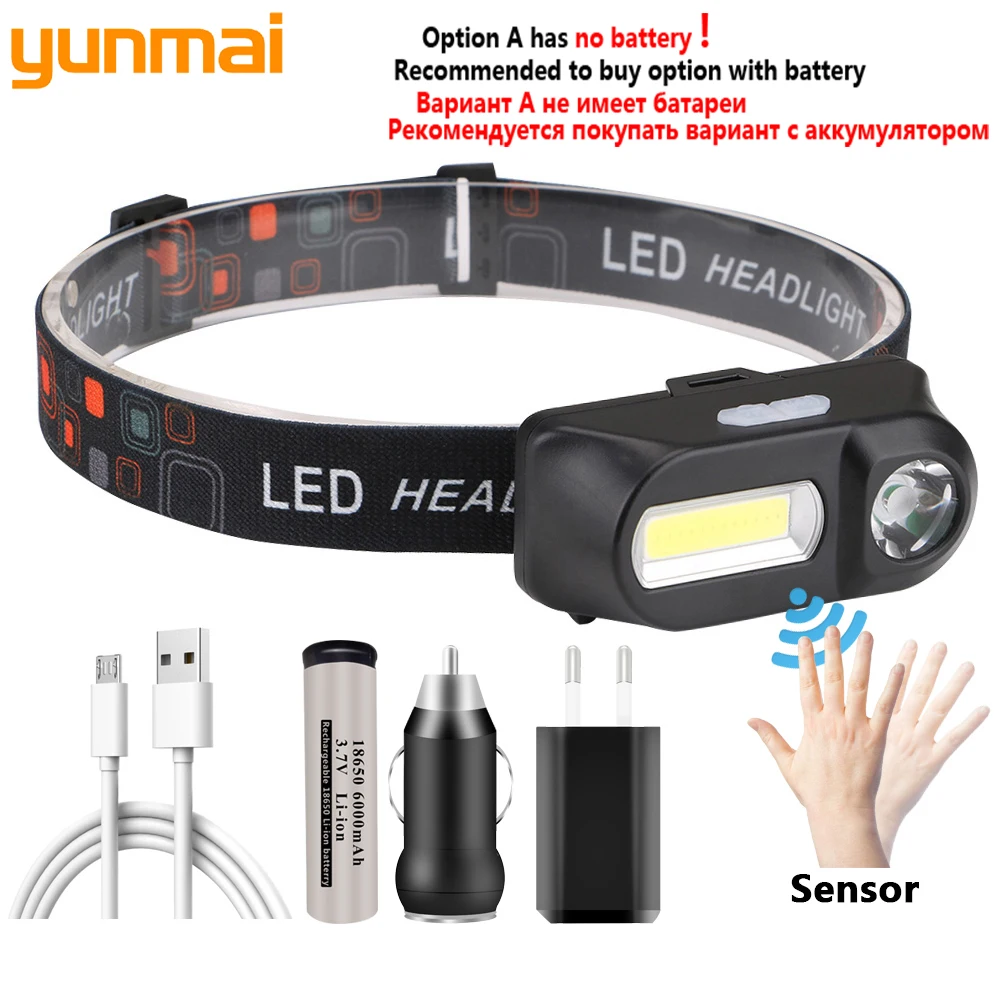 1804 сенсор XP-G Q5 фара для кемпинга фара 1*18650 перезаряжаемый аккумулятор светодиодный COB лампы Yunmai литий-ионный 10 Вт ночной пеший туризм