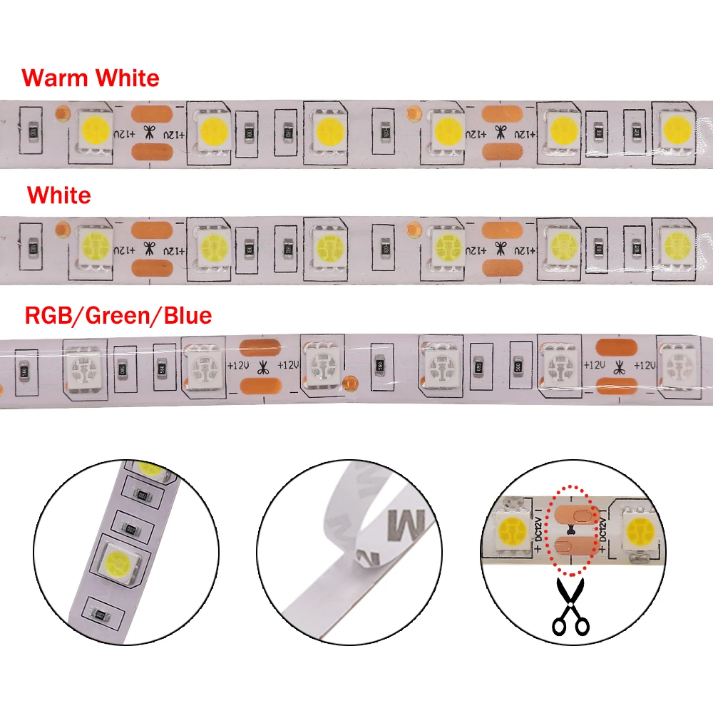 5 м RGB светодиодный ленточный светильник 12 В 2835 5050 5054 гибкая светодиодная лента 60120240360480 светодиодов водонепроницаемый диодный веревочный светильник
