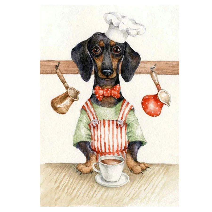 Алмазная мозаика, квадратная, круглая, 5D, DIY наборы для алмазной живописи, с изображением кофейника, повара, собаки, для домашнего декора, A1774