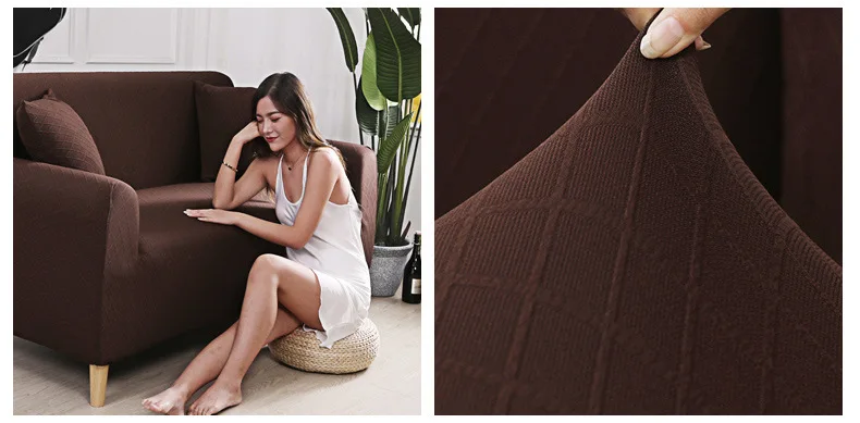 Чехол для дивана однотонный, жаккардовый, пылезащитный, нескользящий, однотонный, Двухместный, Трехместный, диванная подушка
