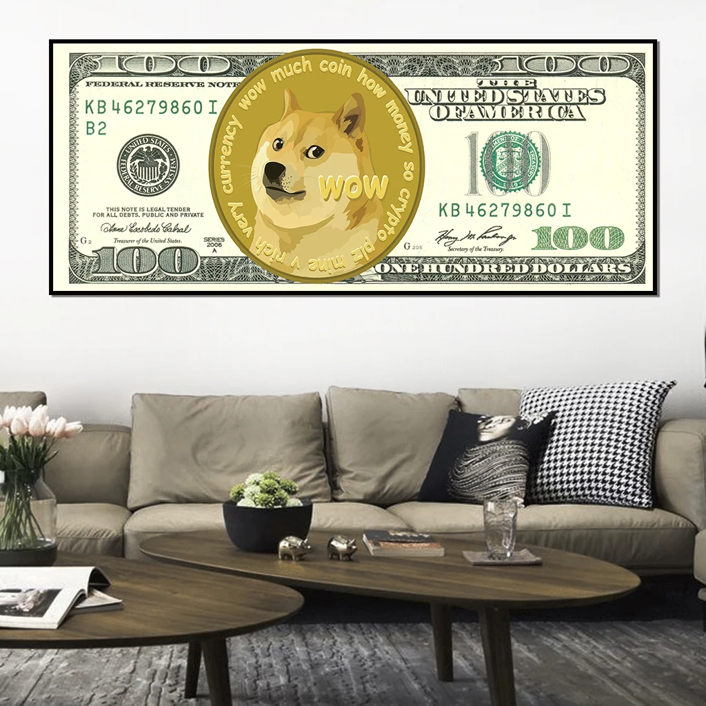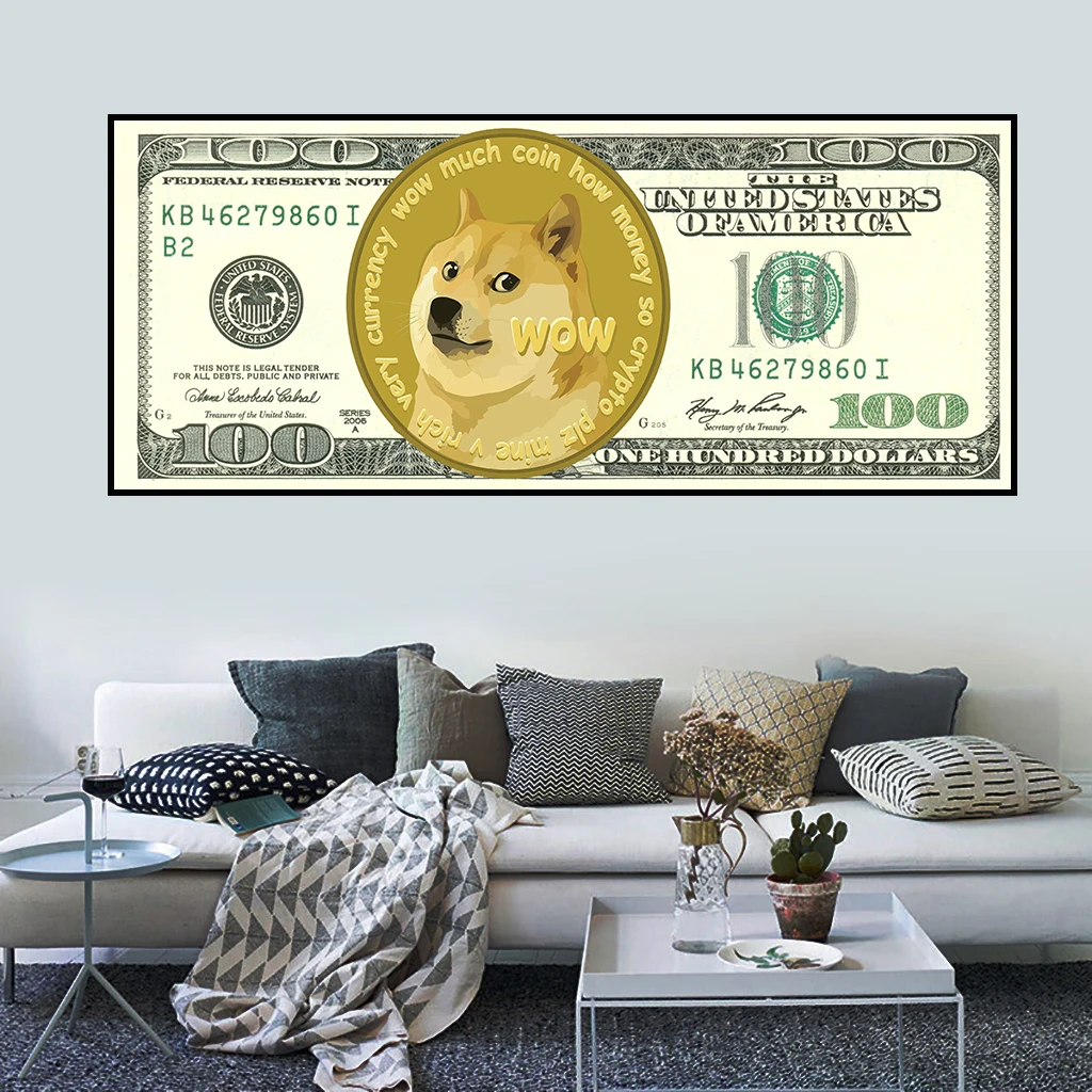 Настенная картина с изображением доллара догкоина, смешные художественные картины, декор для гостиной, плакат и принты на холсте, Настенный декор