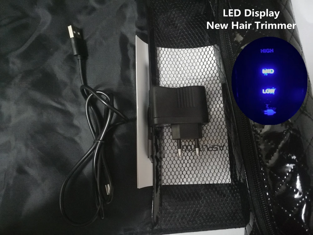 1 триммер для волос, 1 сумка для хранения, 2 зажима, 1 расческа, 1 щетка для чистки, 2 разделителя, 1 USB кабель + вилка ЕС, новый триммер для волос