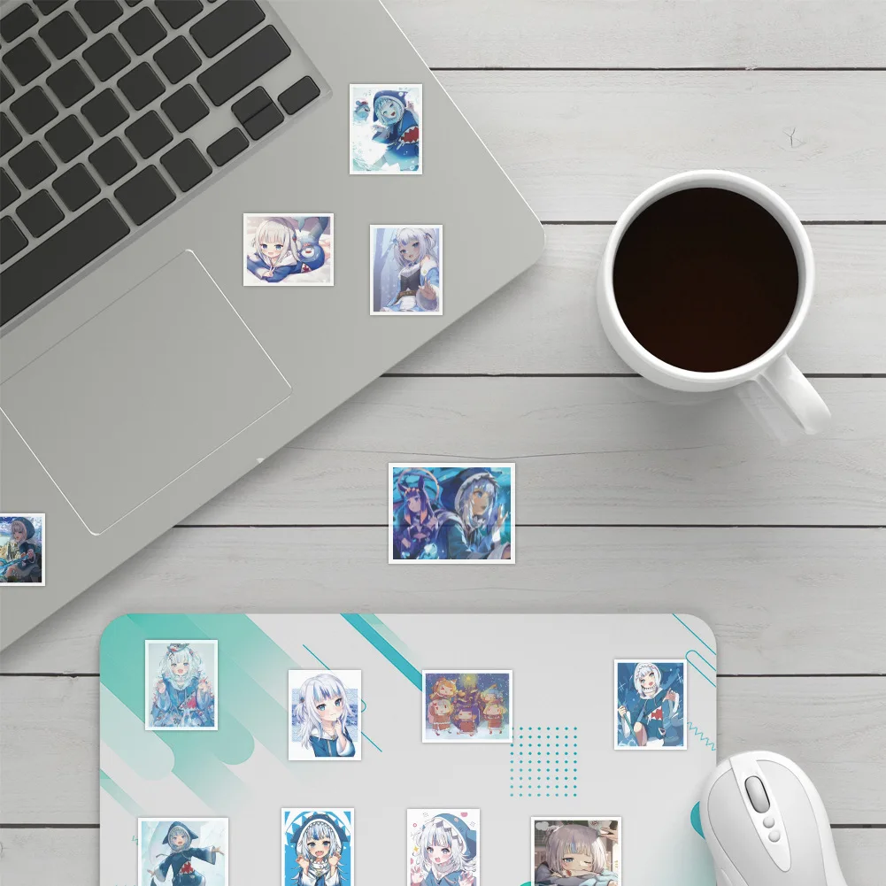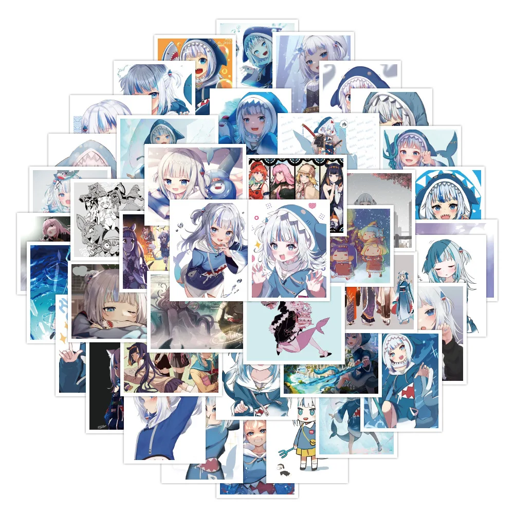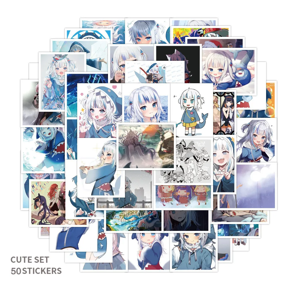 Стикеры в стиле аниме девушки Gawr Gura, водонепроницаемые наклейки с симпатичной акулой для ноутбука, чемодана, мотоцикла, 50 шт.
