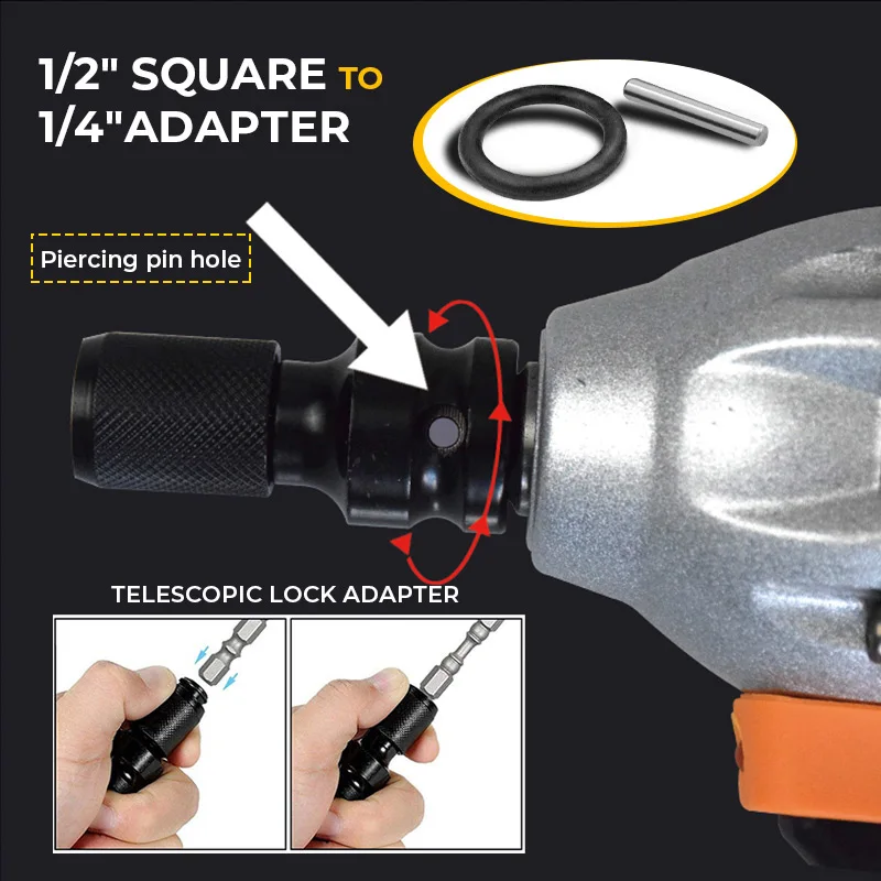 【Высококачественный материал】Преобразуйте любой воздушный или мощный ударный ключ в сверло или Трещоточный ключ в драйвер с помощью этого однокомпонентного патрон-преобразователь, быстроразъемный 1/2 дюймовый Квадратный привод на 1/4 дюймовый адаптер надежно удерживает любой 1/4 "шестигранный наконечник