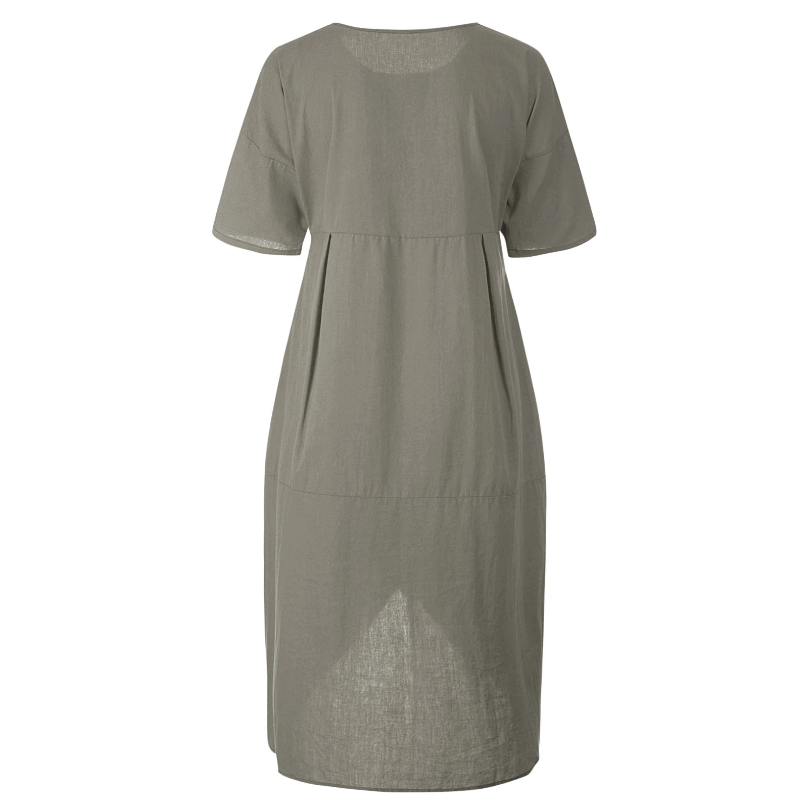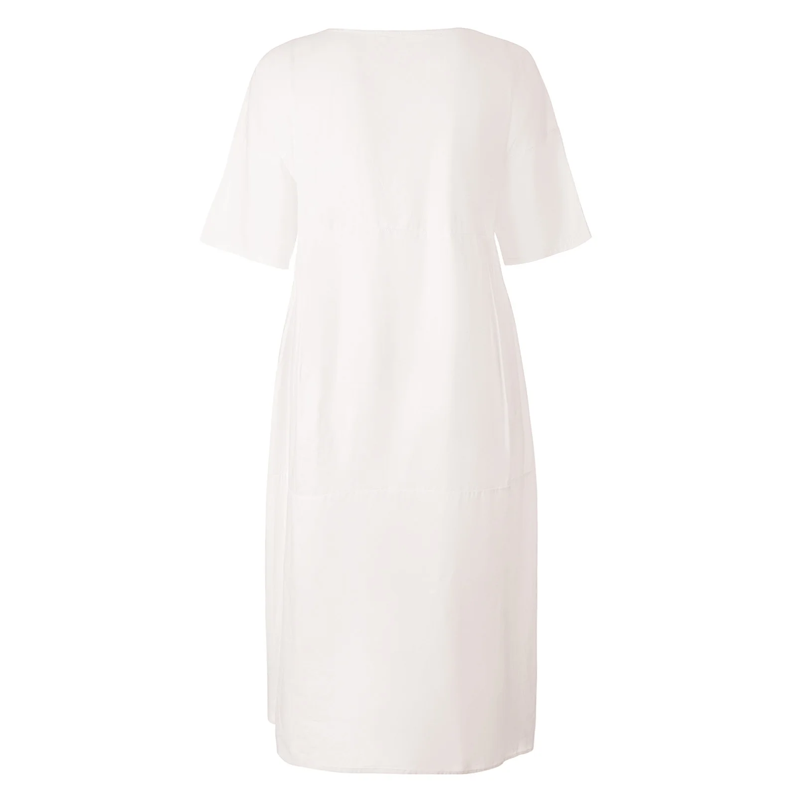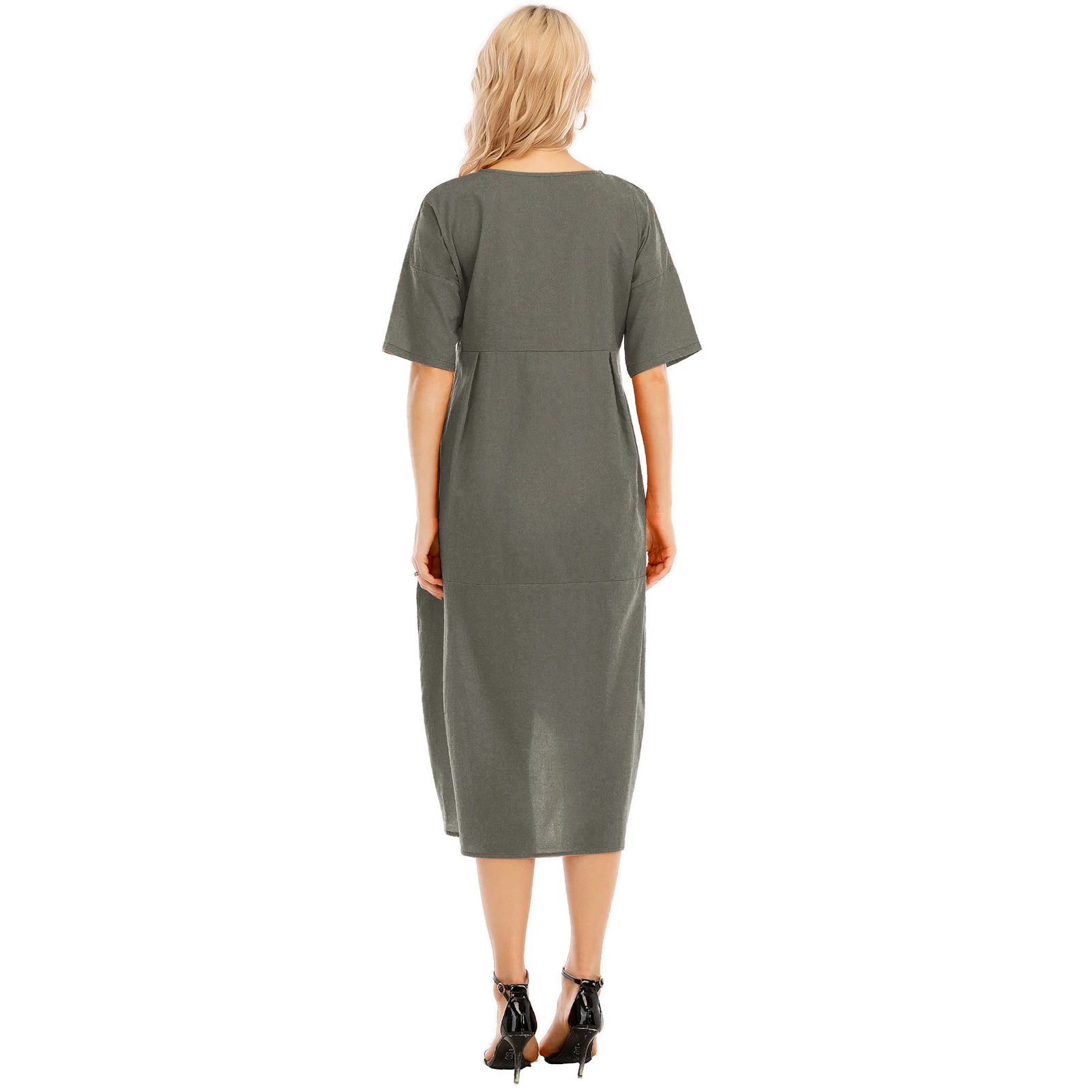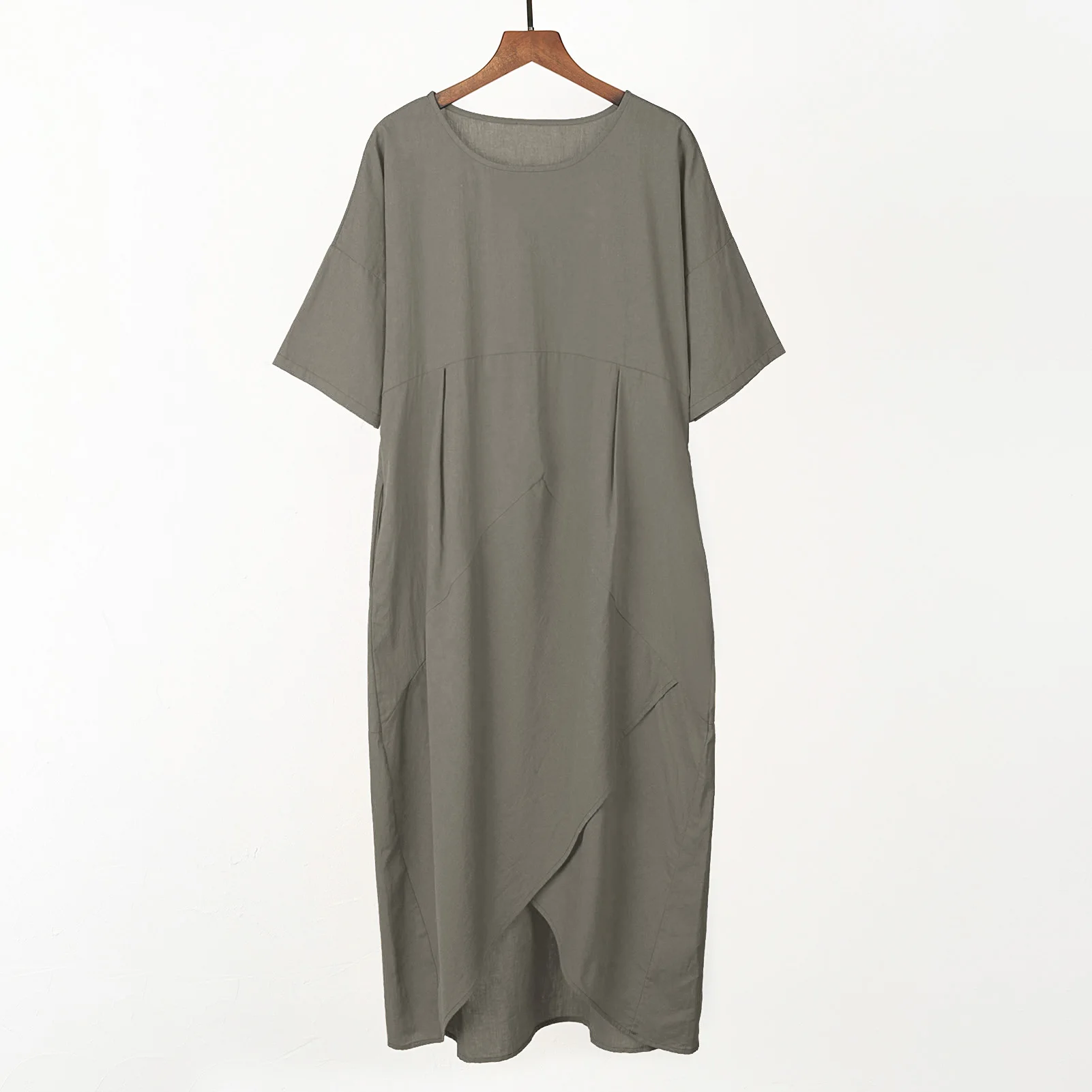 EaseHut модное женское платье с круглым вырезом и короткими рукавами и высокой талией, с асимметричным нижним краем карманами размера плюс S-5XL повседневное свободное платье