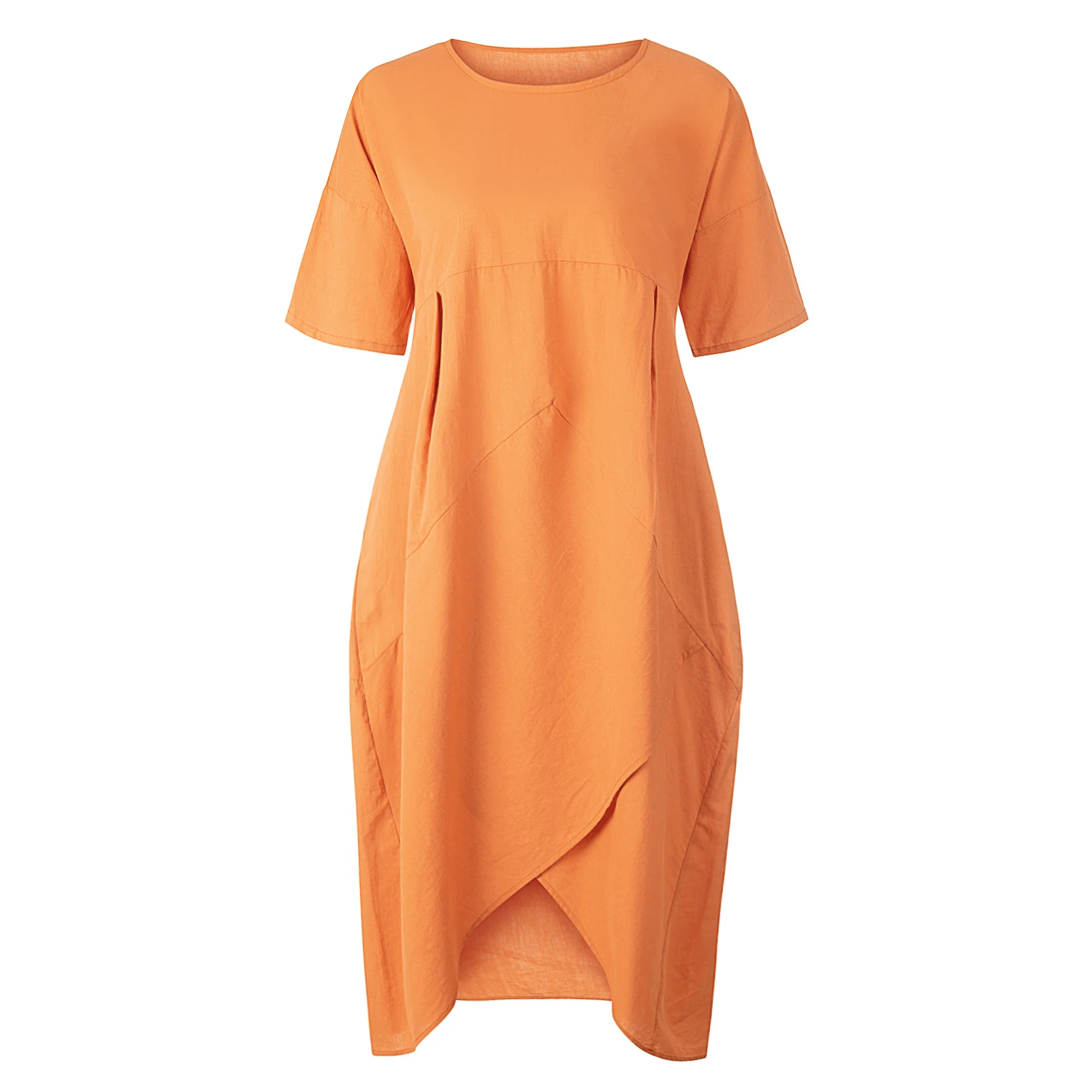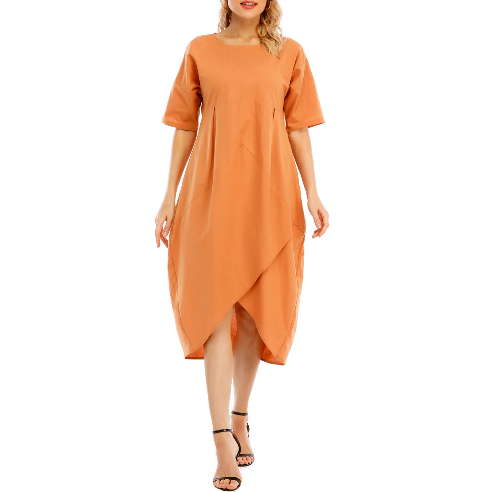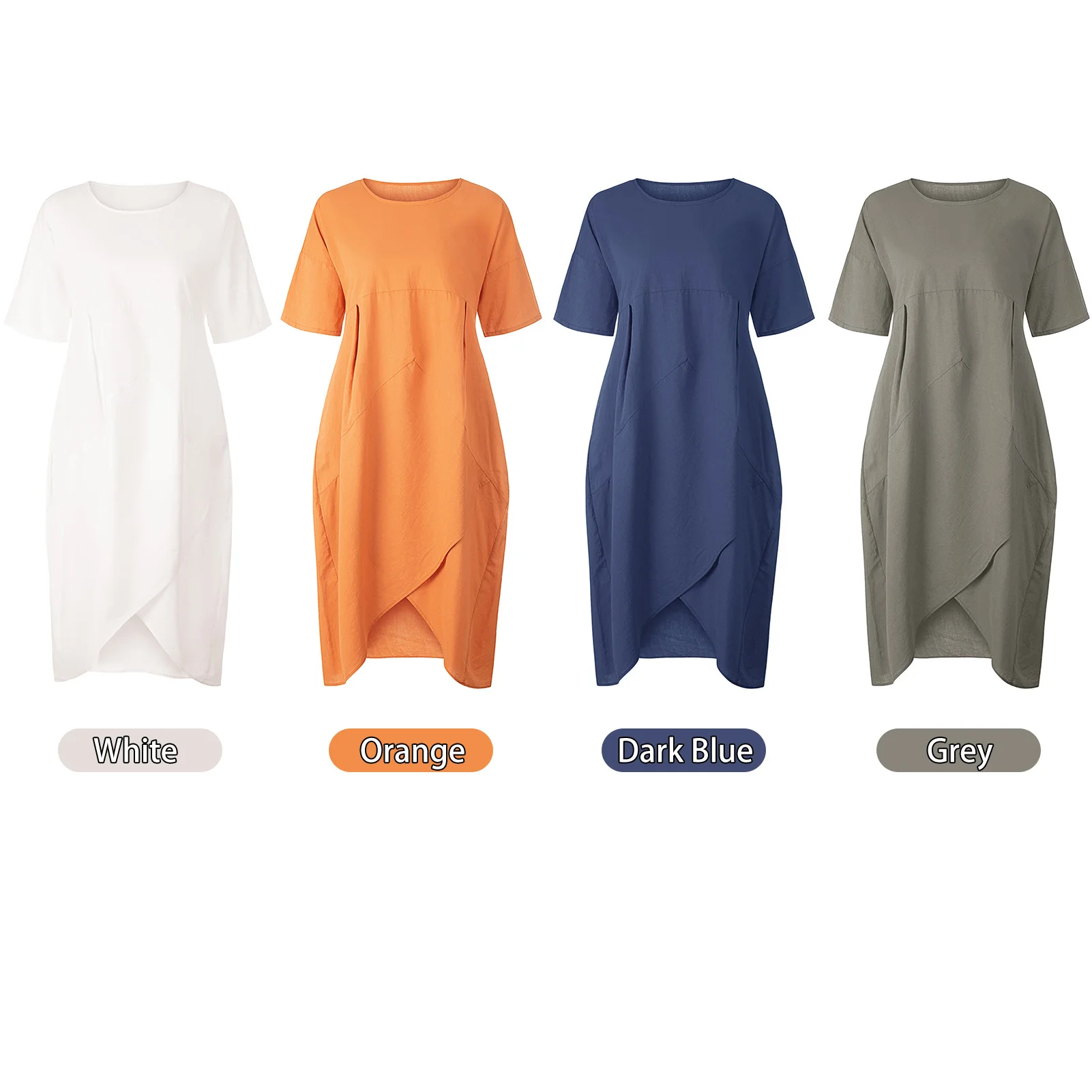 Описание: Однотонное платье с круглым вырезом, короткими рукавами, высокой талией, боковыми карманами и асимметричным подолом. Повседневное платье для повседневной работы. Особенности: Изготовлены из хлопка, мягкие, дышащие и удобные в носке. Стильный низкий асимметричный подол. С круглым вырезом, открытыми плечами и короткими рукавами. Высокая талия и боковые карманы. Он был вырезан с расслабленной посадкой. Характеристики: Размер: S (US2 UK/AU6 EU32) / M (US4 UK/AU8 EU34) / L (US6 UK/AU10 EU36) / XL (US8 UK/AU12 EU38) / 2XL (US10 UK/AU14 EU40) / 3XL (US12 UK/AU16 EU42) / 4XL (US14 UK/AU18 EU44) / 5XL (US16 UK/AU20 EU46) (опционально) Цвет: оранжевый/белый/серый/темно-синий (по желанию) Пол: женщин Возрастная группа: взрослый Материал: хлопок Вырез: круглый вырез Стиль рукава: с открытыми плечами Длина рукава: короткий Длина одежды: до середины икры Силуэт: свободный Тип узора: однотонный Стиль: Повседневный Вес: прибл. 190-260 г/6,7-9,1 унций Информация о размере: