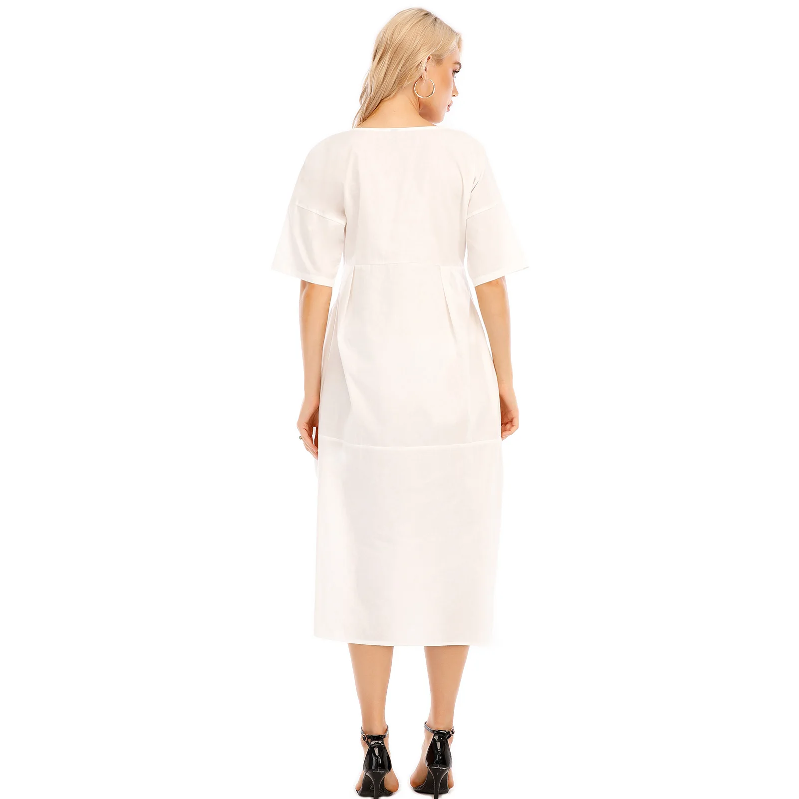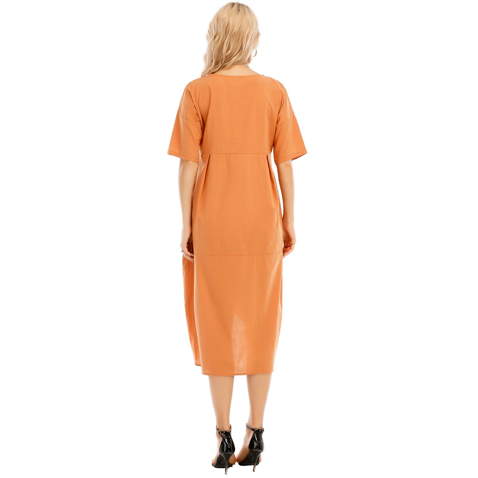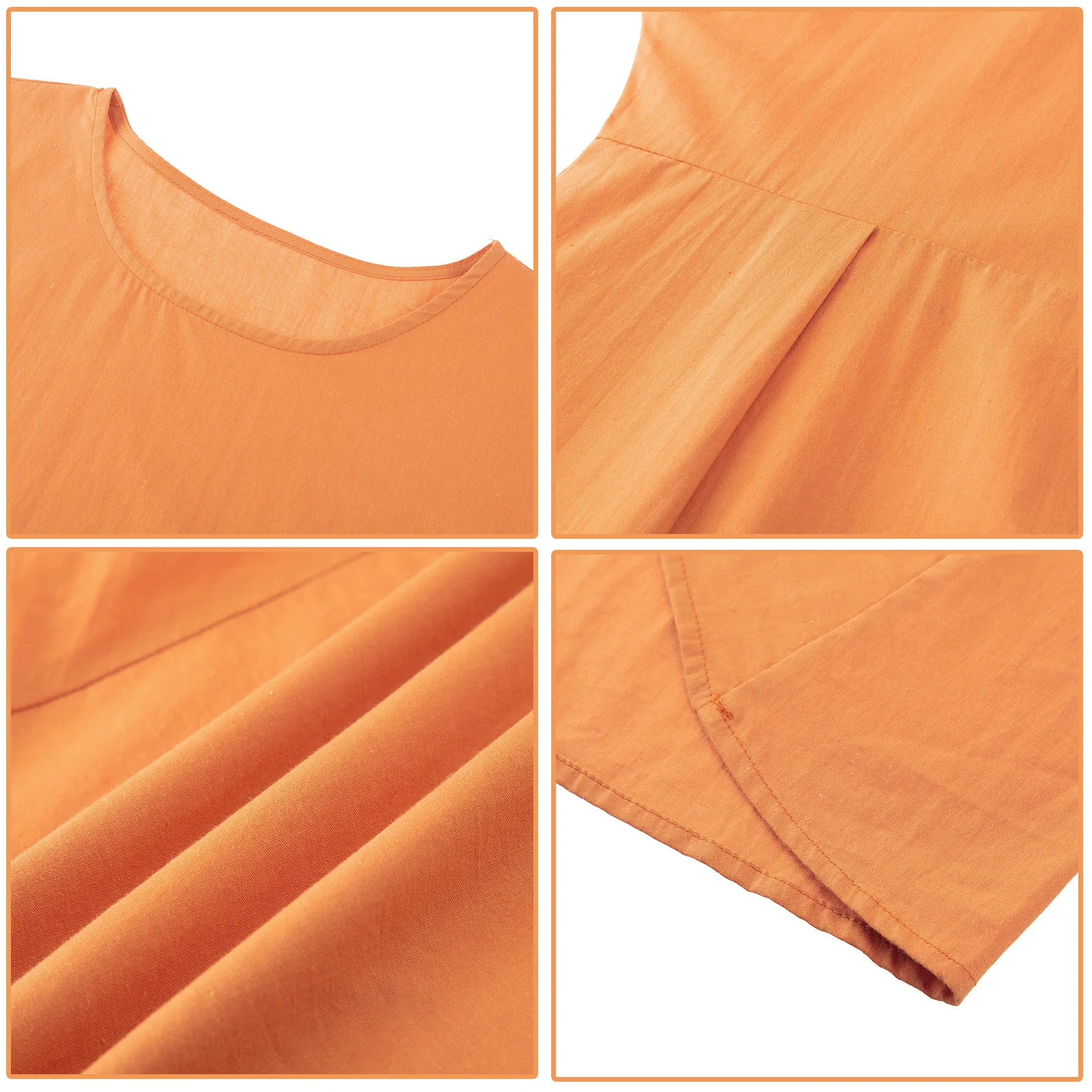 Описание: Однотонное платье с круглым вырезом, короткими рукавами, высокой талией, боковыми карманами и асимметричным подолом. Повседневное платье для повседневной работы. Особенности: Изготовлены из хлопка, мягкие, дышащие и удобные в носке. Стильный низкий асимметричный подол. С круглым вырезом, открытыми плечами и короткими рукавами. Высокая талия и боковые карманы. Он был вырезан с расслабленной посадкой. Характеристики: Размер: S (US2 UK/AU6 EU32) / M (US4 UK/AU8 EU34) / L (US6 UK/AU10 EU36) / XL (US8 UK/AU12 EU38) / 2XL (US10 UK/AU14 EU40) / 3XL (US12 UK/AU16 EU42) / 4XL (US14 UK/AU18 EU44) / 5XL (US16 UK/AU20 EU46) (опционально) Цвет: оранжевый/белый/серый/темно-синий (по желанию) Пол: женщин Возрастная группа: взрослый Материал: хлопок Вырез: круглый вырез Стиль рукава: с открытыми плечами Длина рукава: короткий Длина одежды: до середины икры Силуэт: свободный Тип узора: однотонный Стиль: Повседневный Вес: прибл. 190-260 г/6,7-9,1 унций Информация о размере: