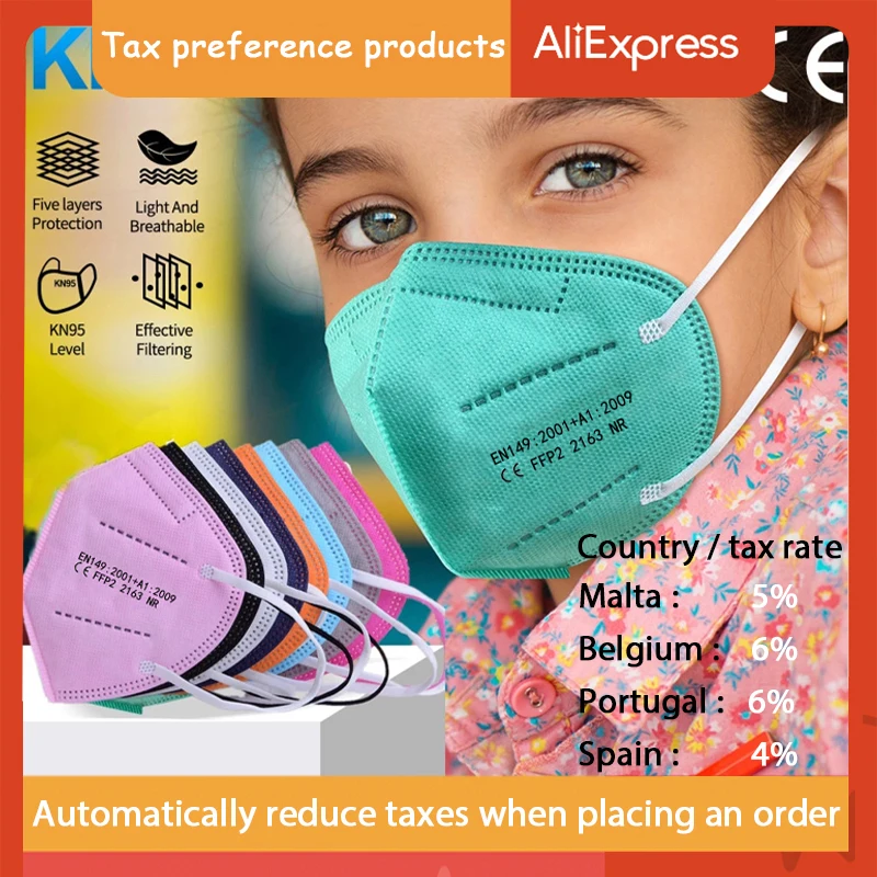 Детская маска для лица FPP2, CE KN95, сертифицированная FFP2, 5-сло...