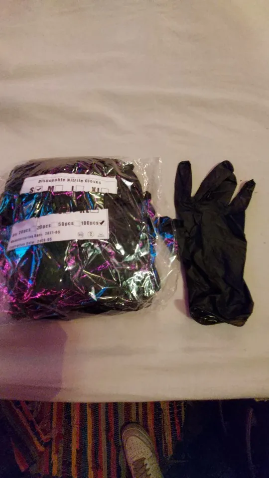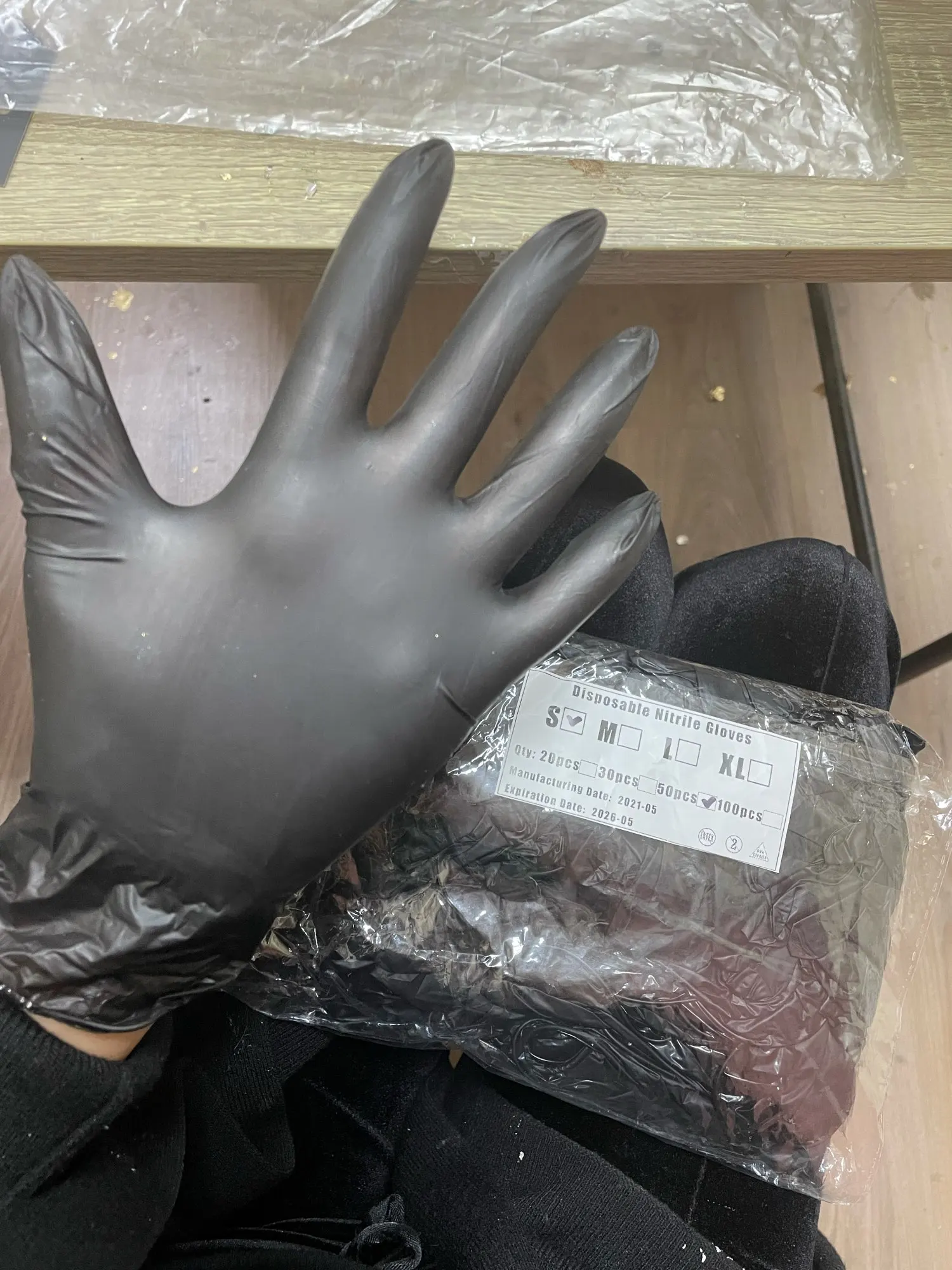 Перчатки черные одноразовые, без латекса, без пудры, размер S M XL