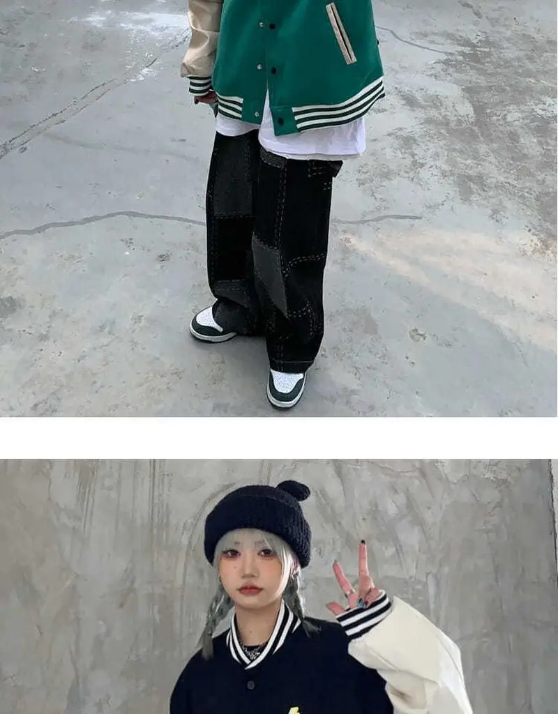 Имитация двух частей Джерси Корейская Ретро хип-хоп свободная комби...