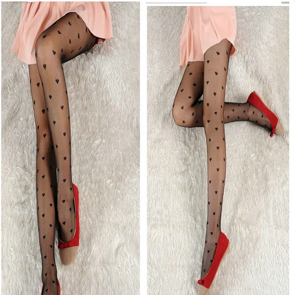 1 шт. пикантные Для женщин, колготки, летние колготки с принтом в виде сердечек для девочек, колготки, чулки, длиной до лодыжек; Размеры бесшовные колготки ажурные чулки в сетку с принтом Collant
