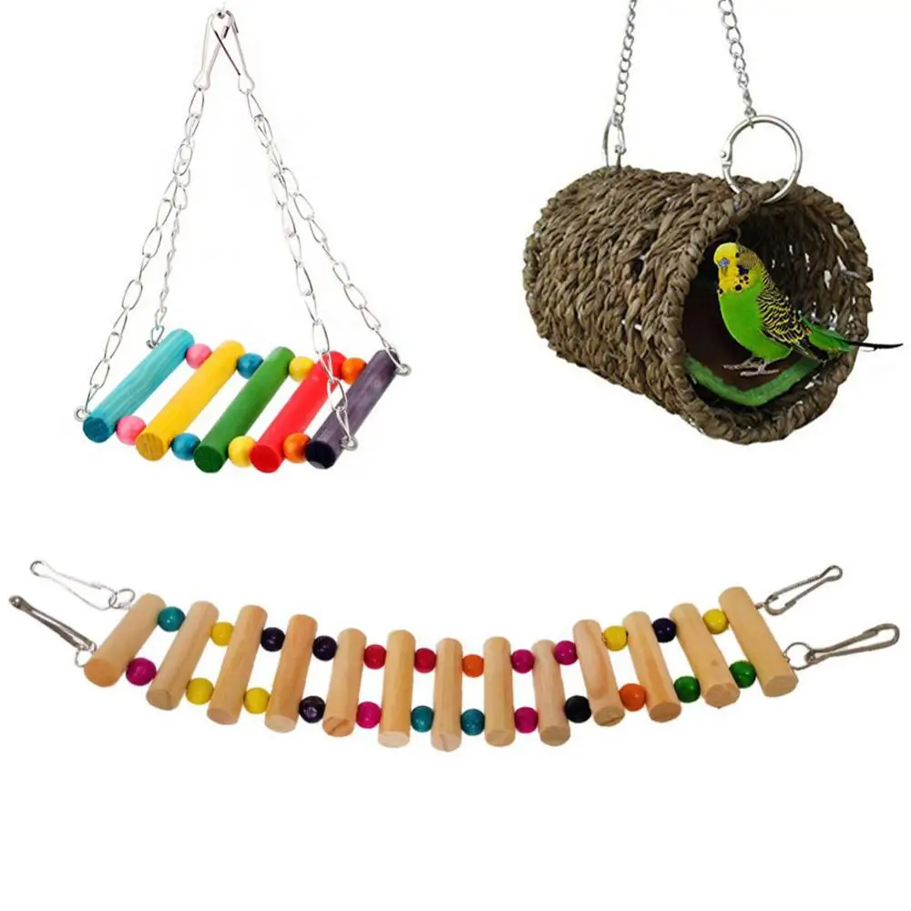 Цветной гамак, 3 шт., лестница для попугая, игрушка для хомяка, белки, клетка для домашних птиц, подвесной декор, развлекательные и образовательные принадлежности