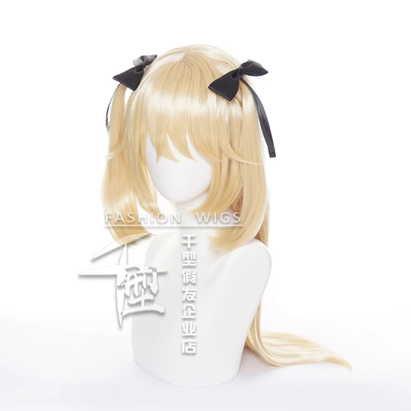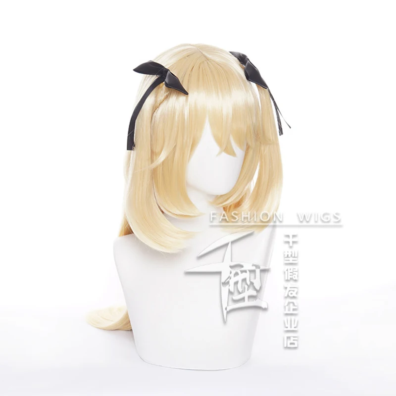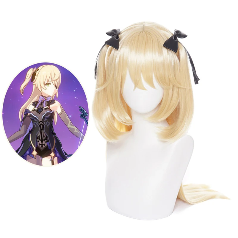 Фишль парик с повязка с бантом Косплэй костюм синтетический термостойкий парик волос Genshin воздействия Для женщин длинные парики