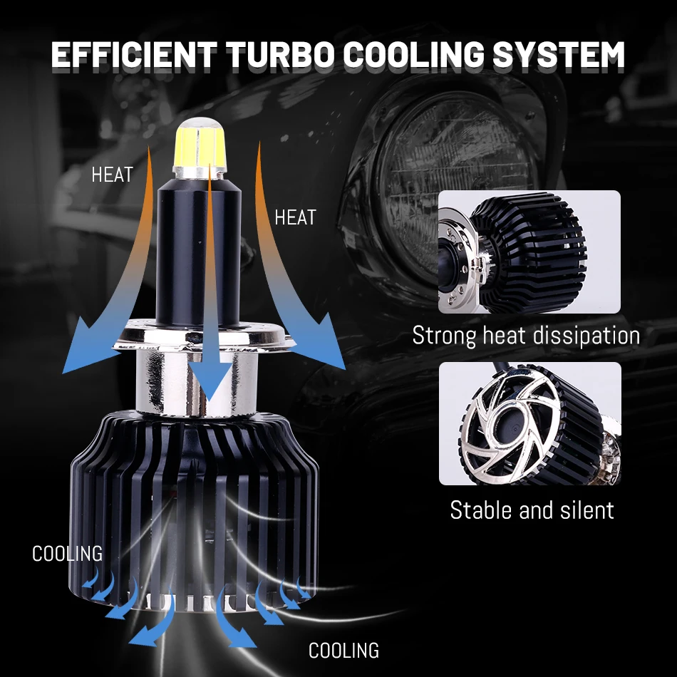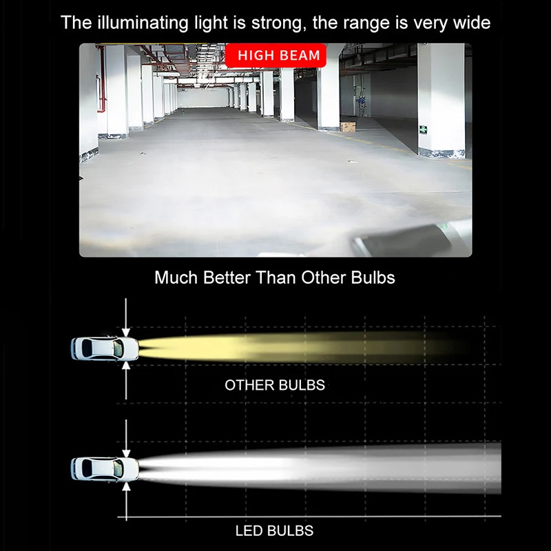 (1) светодиодная фара 25000лм/пара, каждая лампа 12500лм, супер яркая.(2) один светильник имеет 8 сторон 48 шт. чипов CSP, 360 градусов светильник ing.(3) Этот продукт 5000k, теплый белый светильник.(4) Мощность этого продукта составляет 50 Вт/пара, каждая лампа 25 Вт.