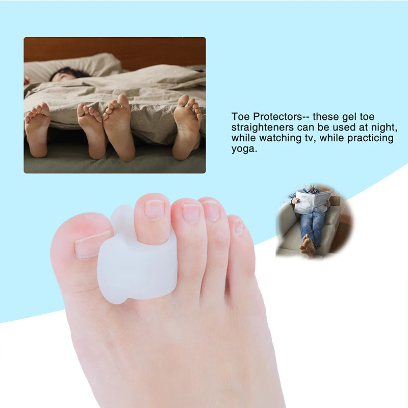 1. Дизайн для большого пальца ноги отдельно: гелевые разделители для пальцев ног работают как разделители для разделения перекрывающихся пальцев ног, правильная проблема соединения без хирургического вмешательства. Он будет аккуратно отделять и выравнивать Носок, потому что у него достаточно разделителей для раздельного использования. Снимает боль и давление в ногах.