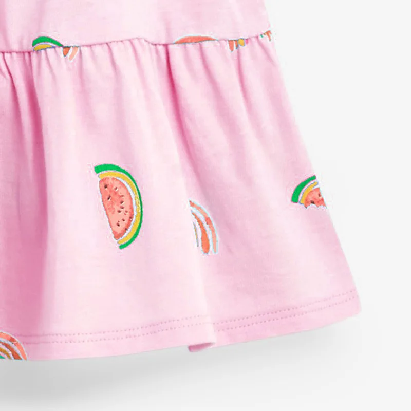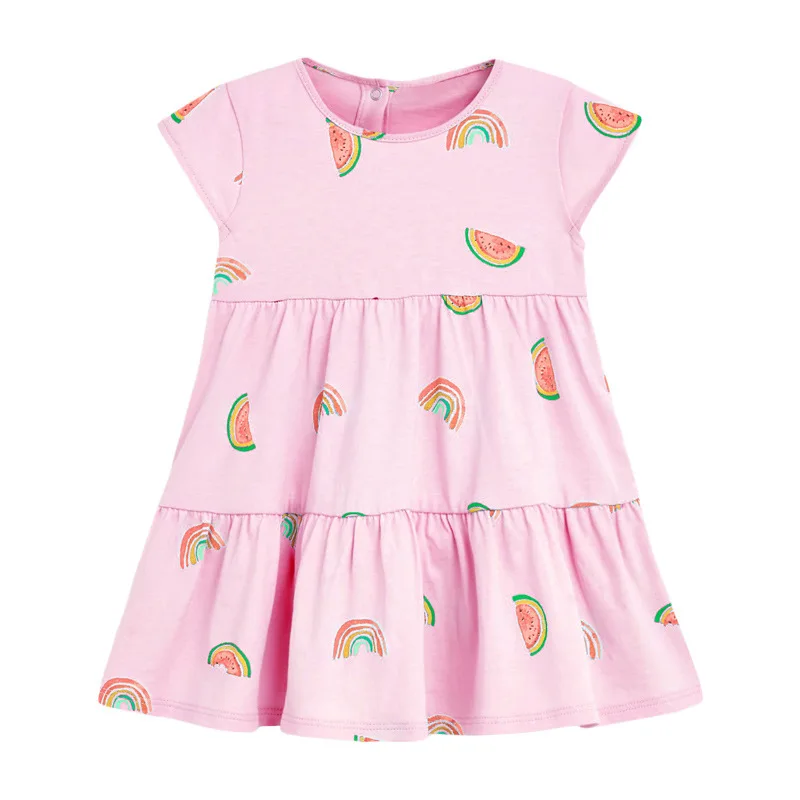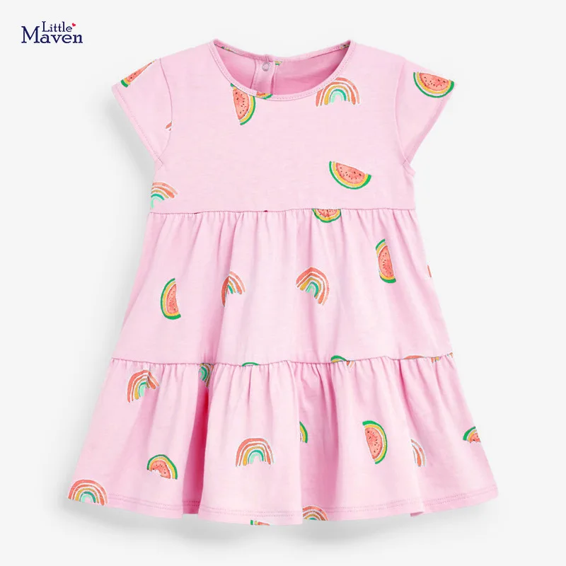 Платья для девочек; Коллекция 2021 года; Летняя одежда для маленьких девочек с фруктами; Vestiods; Детская одежда; Повседневные хлопковые розовые платья с арбузом для детей; От 2 до 7 лет