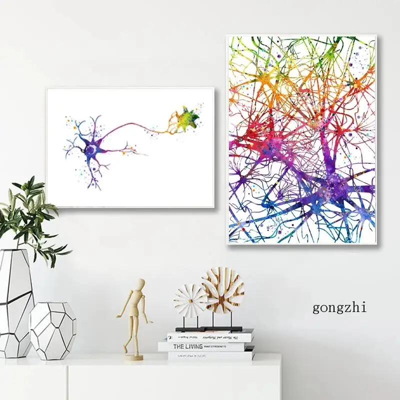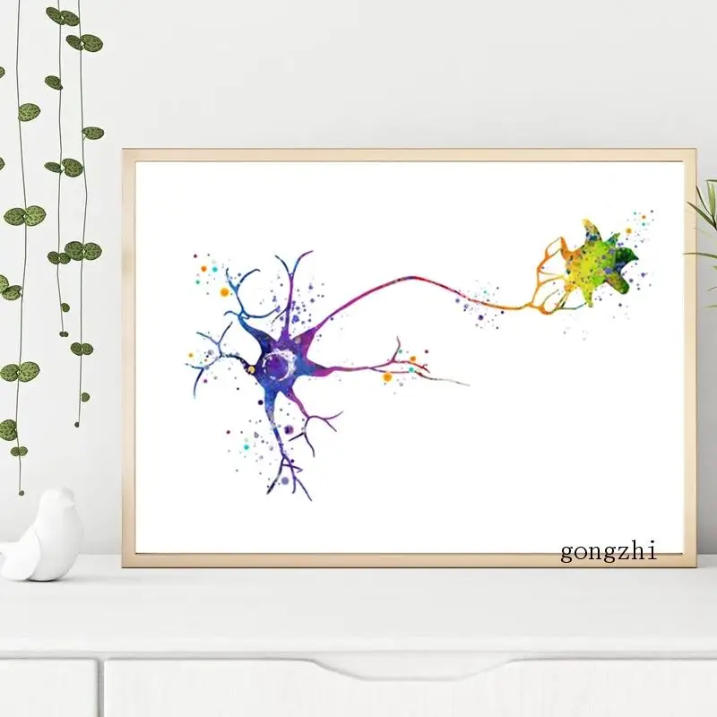 Многополярная мозга нейронной сотовый Анатомия медицинский плакат на научную тематику Красочный холст для живописи и принты настенные картины Пособия по биологии Декор