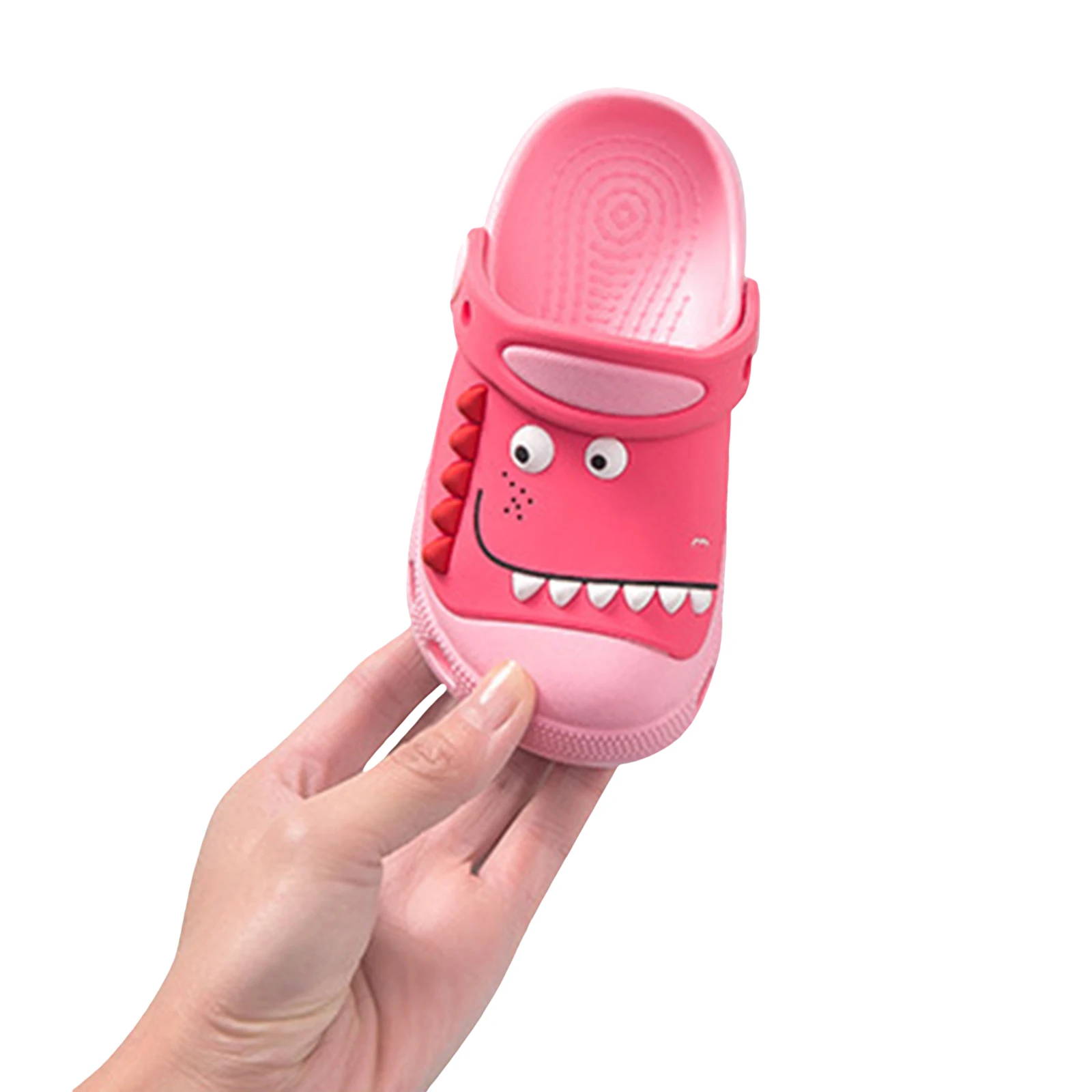 Детские летние пляжные шлепанцы с изображением динозавра из мультфильма животных открытые дышащие сандалии с нескользящей подошвой для пар подошвой для мальчиков и девочек