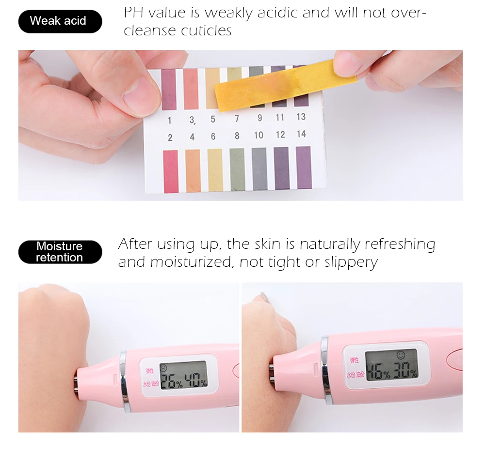 Здоровое использование, эффект удивит вашу светло-розовую гелевую текстуру мягкой и гладкой, быстро увлажняет и впитывает, И медленно показывают, что грязь в области кисточек у кожи кислота значение слабо кислотная и не будет чрезмерно очищать кутикулу влаги retentionпосле использования, кожа естественно освежает и увлажняет, не туго или Скользкого
