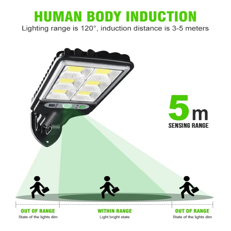 -Автоматическое включение: датчик движения PIR может сканировать источник тепла, который непрерывно перемещается в пределах диапазона обнаружения. Когда кто-то появится в области, светильник автоматически включится.