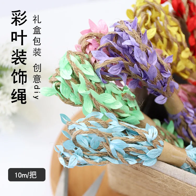5 мм лента для листьев мешковины, натуральная настенная джутовая лоза шпагат с искусственными зелеными листьями для деревенской свадьбы, дома, сада, джунглей вечерние украшения и декор для поделок своими руками